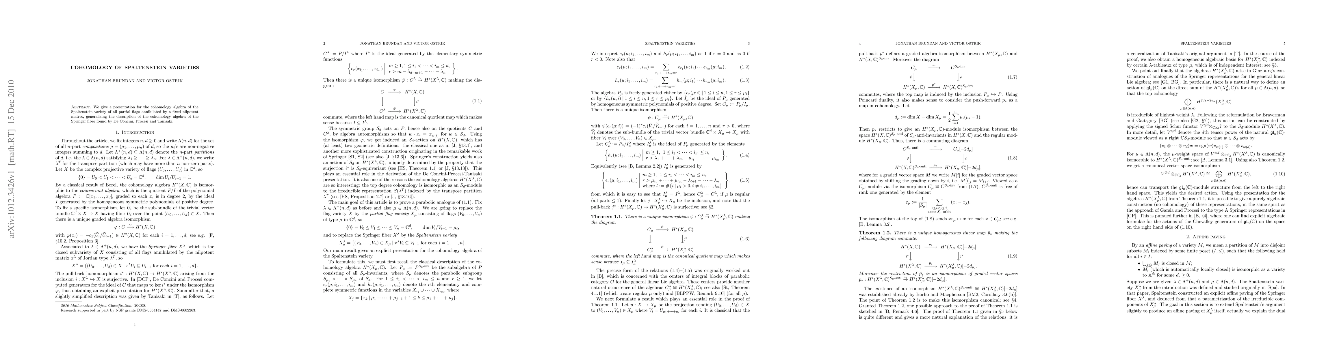 We give a presentation for the cohomology algebra of the Spaltenstein variety of all partial flags annihilated by a fixed nilpotent matrix, generalizing the description of the cohomology algebra of the Springer fiber found by De Concini, Procesi and Tanisaki.