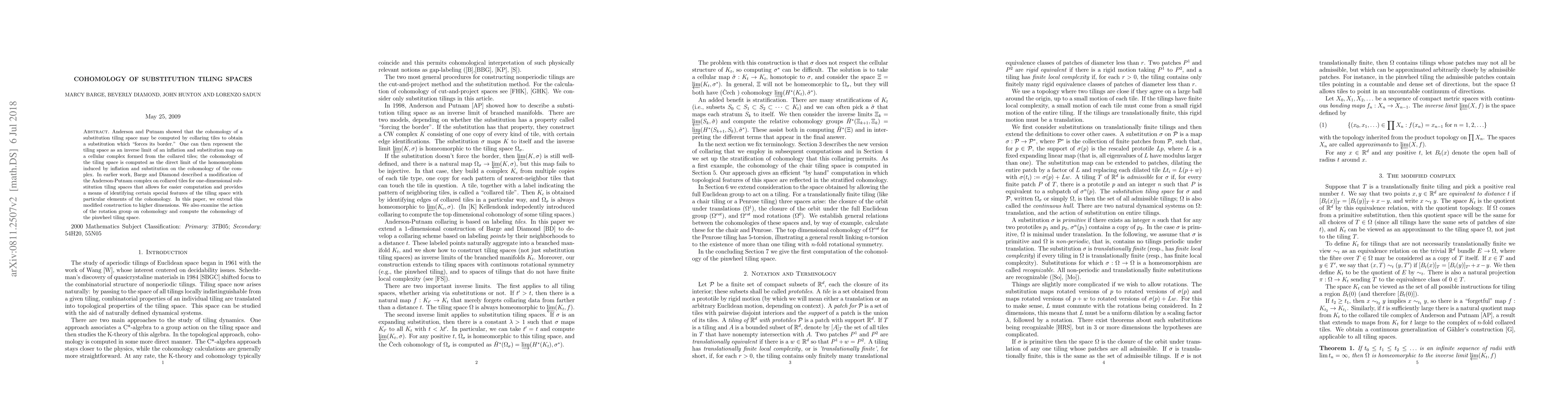 This paper extends the modified construction of Barge and Diamond for computing the cohomology of one-dimensional substitution tiling spaces to higher dimensions, demonstrating the action of rotation groups on cohomology and analyzing the cohomology of the pinwheel tiling space.