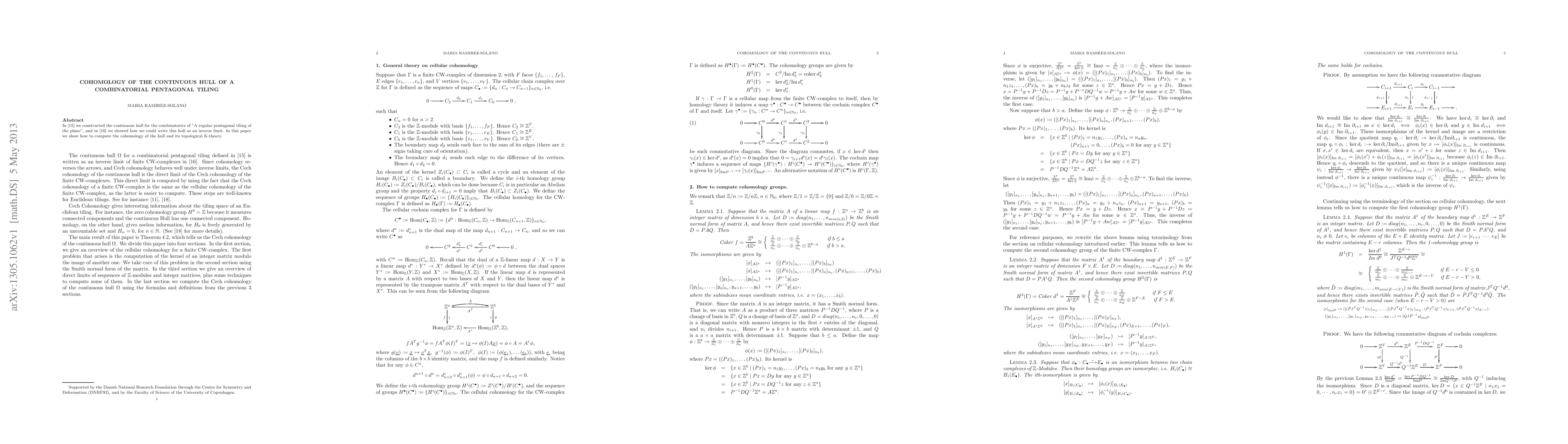 In the article "Construction of the continuous hull for the combinatorics of a regular pentagonal tiling of the plane" we constructed the continuous hull for the combinatorics of "A regular pentagonal tiling of the plane", and in the article "Continuous hull of a combinatorial pentagonal tiling as an inverse limit" we showed how we could write this hull as an inverse limit. In this paper we show how to compute the cohomology of the hull and its topological K-theory.