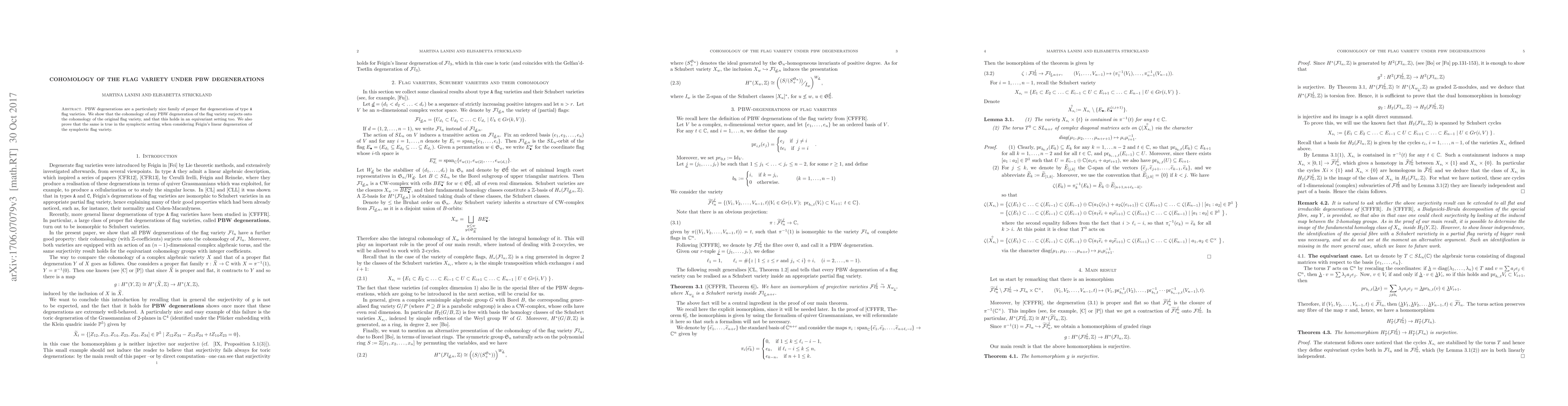 Summary: This paper demonstrates that the cohomology of PBW degenerations of type A flag varieties surjectively maps onto the cohomology of the original flag variety, even in an equivariant context. Similarly, it proves the same for Feigin's linear degeneration in the symplectic setting.