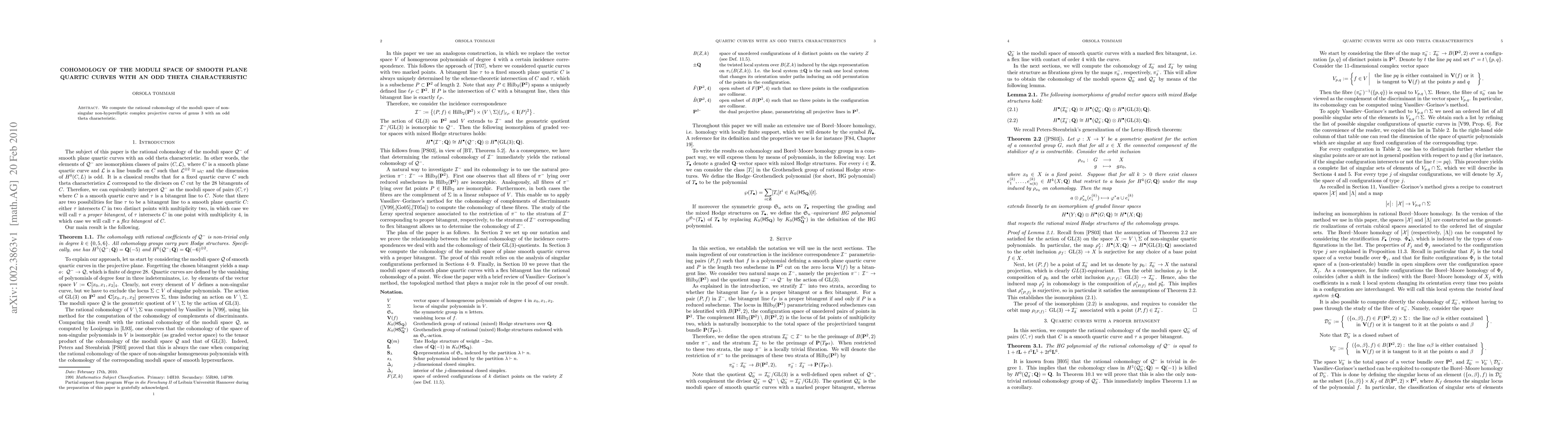Summary: The paper computes the rational cohomology ring of the moduli space for smooth plane quartic curves that are non-hyperelliptic and possess an odd theta characteristic, revealing its structure.