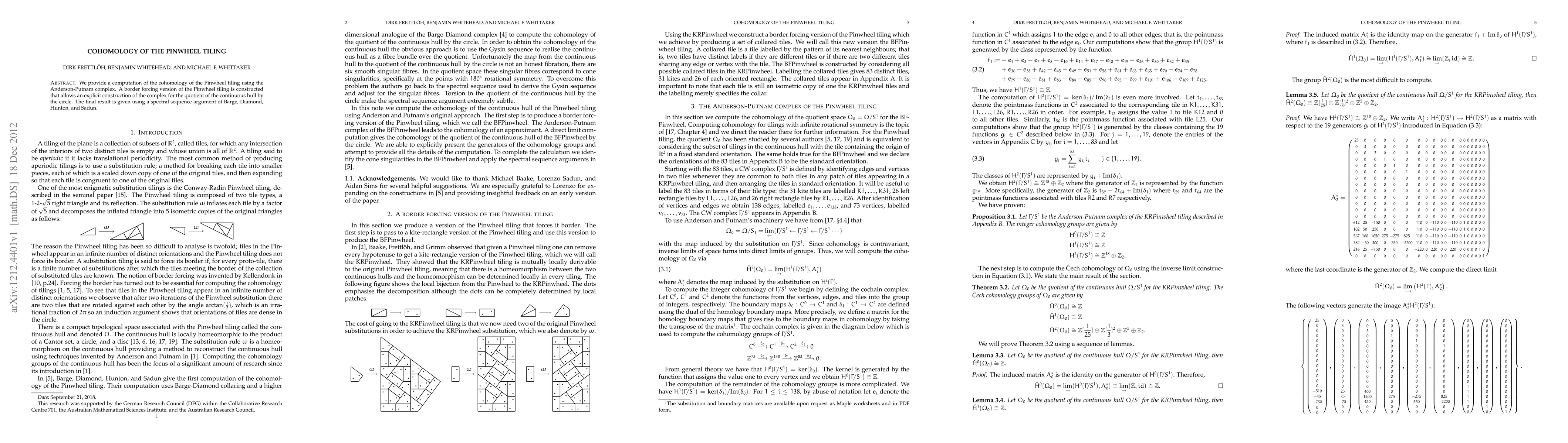 The paper introduces a method to compute cohomology groups for the Pinwheel tiling using the Anderson-Putnam complex and a border forcing technique, providing an explicit construction for the quotient space.