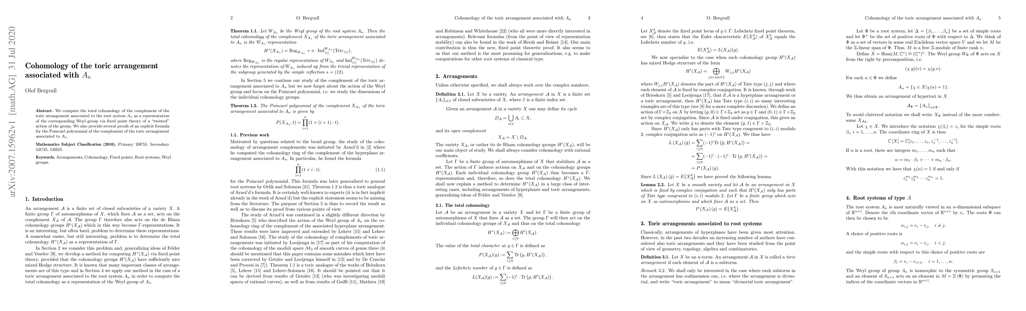 This paper calculates the total cohomology of the complement of the toric arrangement related to the root system $A_n$ using fixed point theory of a "twisted" Weyl group action. It also offers multiple proofs for an explicit formula of the Poincaré polynomial of the associated toric arrangement.