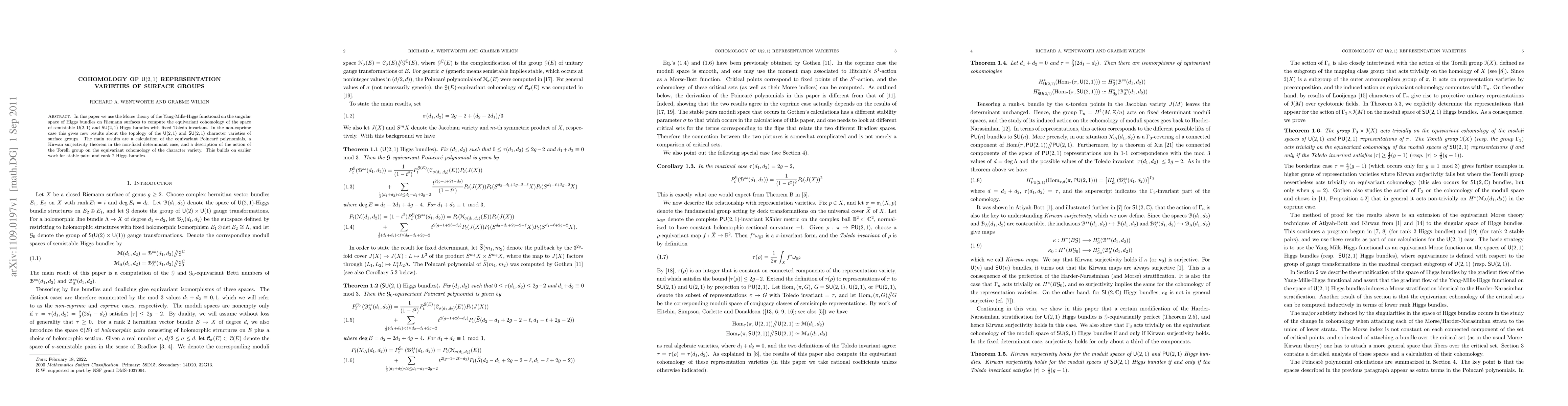 The paper establishes a detailed Morse-theoretic approach to compute equivariant cohomology, introducing a perfect stratification and proving Kirwan surjectivity for non-fixed determinant cases.