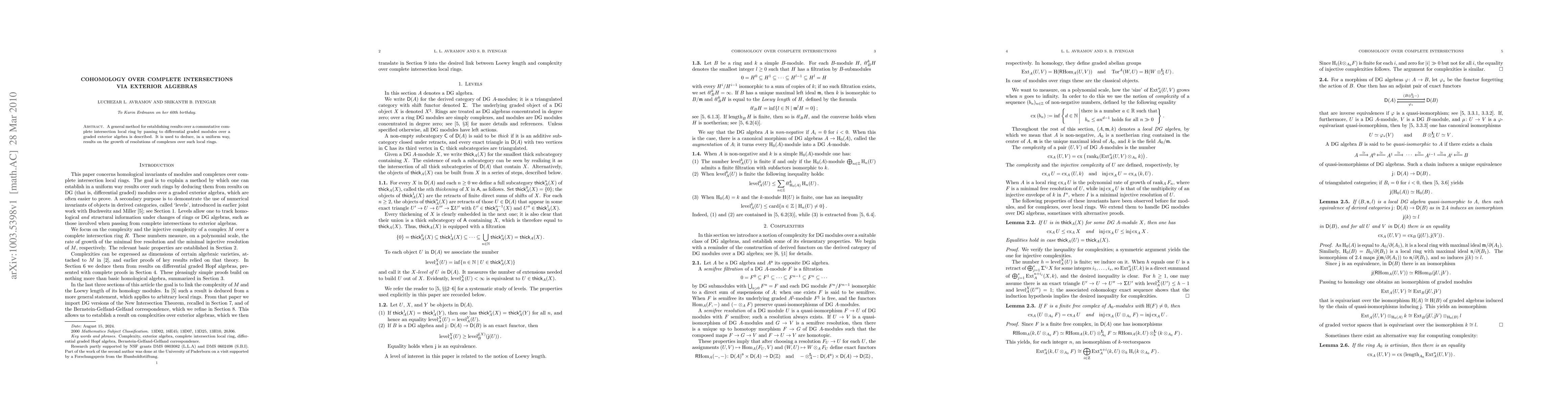 Summary: This paper outlines a method for deriving cohomology results over commutative complete intersection local rings by utilizing differential graded modules over a graded exterior algebra, leading to uniform insights on resolution growth in these contexts.