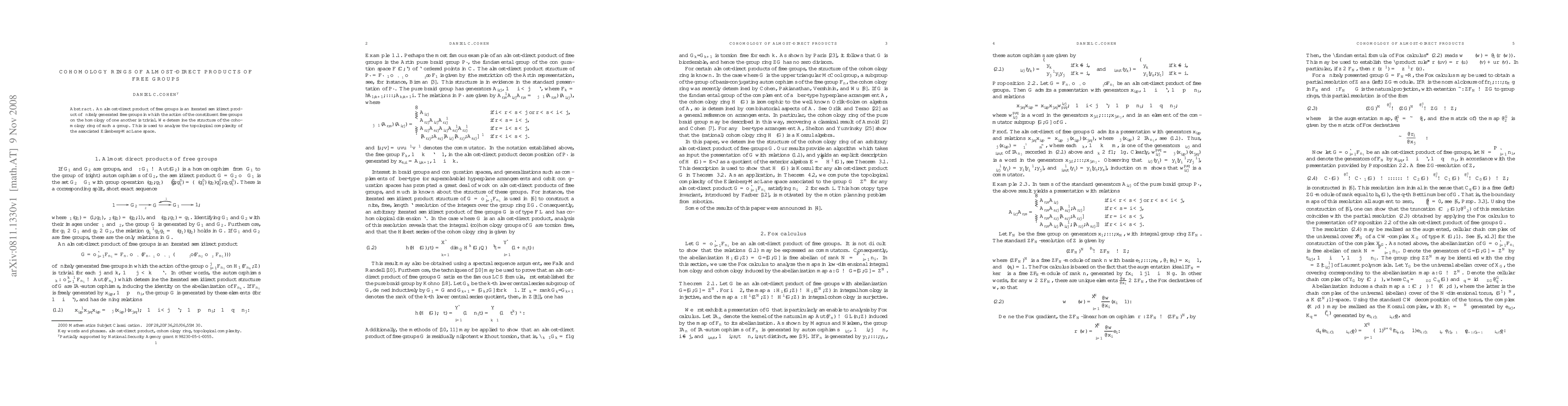 An almost-direct product of free groups is an iterated semidirect product of finitely generated free groups in which the action of the constituent free groups on the homology of one another is trivial. We determine the structure of the cohomology ring of such a group. This is used to analyze the topological complexity of the associated Eilenberg-Mac Lane space.