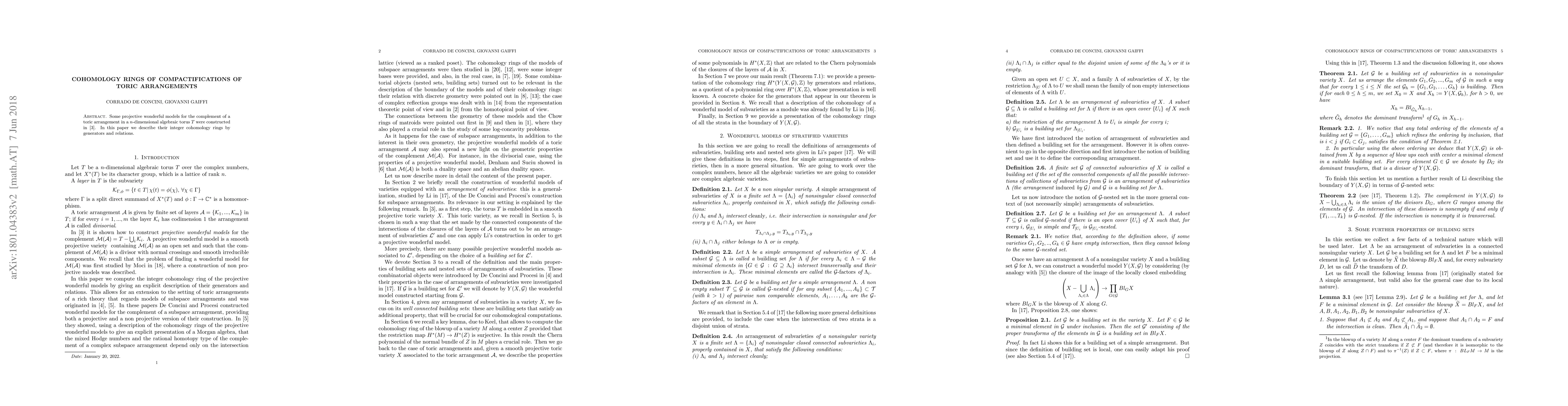 This paper constructs projective wonderful models for the compactification of toric arrangements in an n-dimensional algebraic torus T and provides a detailed description of their integer cohomology rings, including generators and relations.
