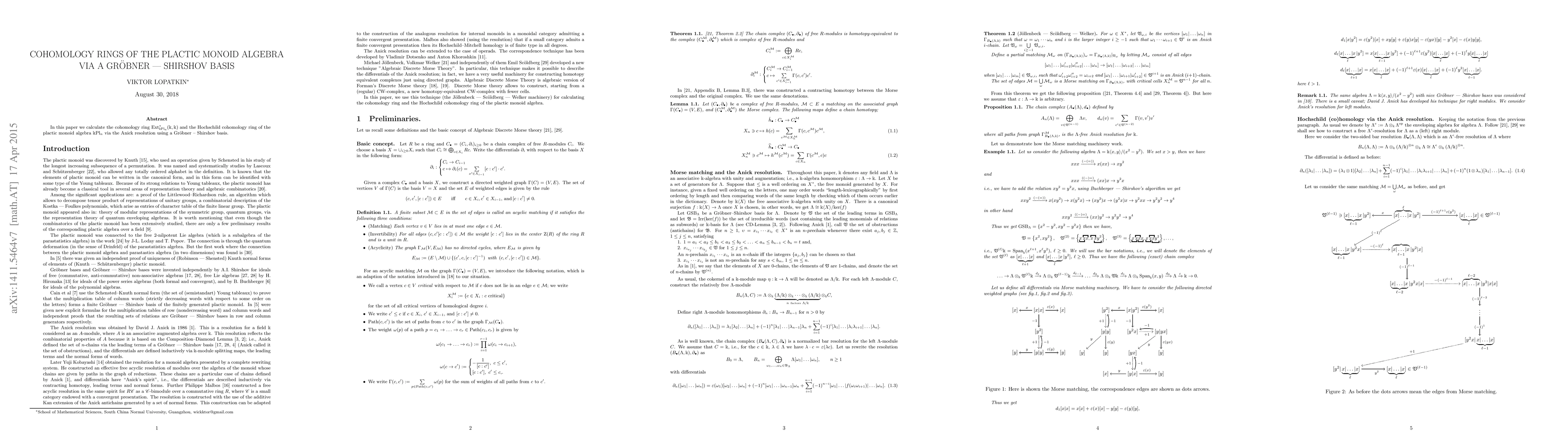 This paper calculates cohomology rings of plactic monoid algebra using Anick's resolution and Groubner-Shirshov basis, shedding light on its algebraic structure.