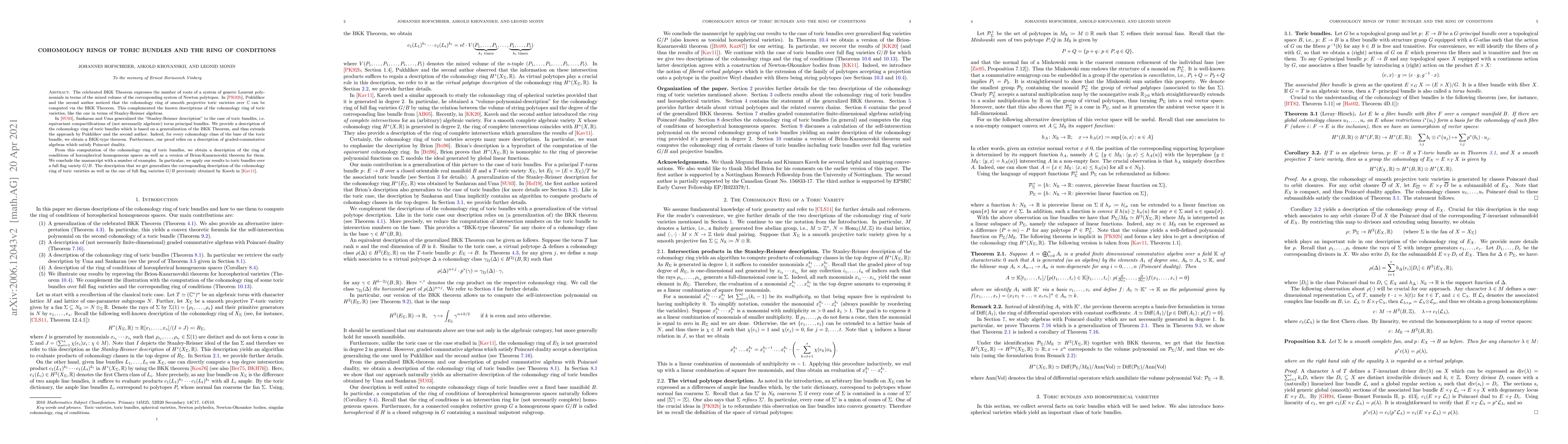 This paper extends the BKK Theorem to describe the cohomology ring of toric bundles using a generalized approach, thereby complementing existing descriptions via Stanley-Reisner algebras. The findings also provide insights into the ring of conditions for horospherical homogeneous spaces and offer a new version of the Brion-Kazarnovskii theorem for these spaces.