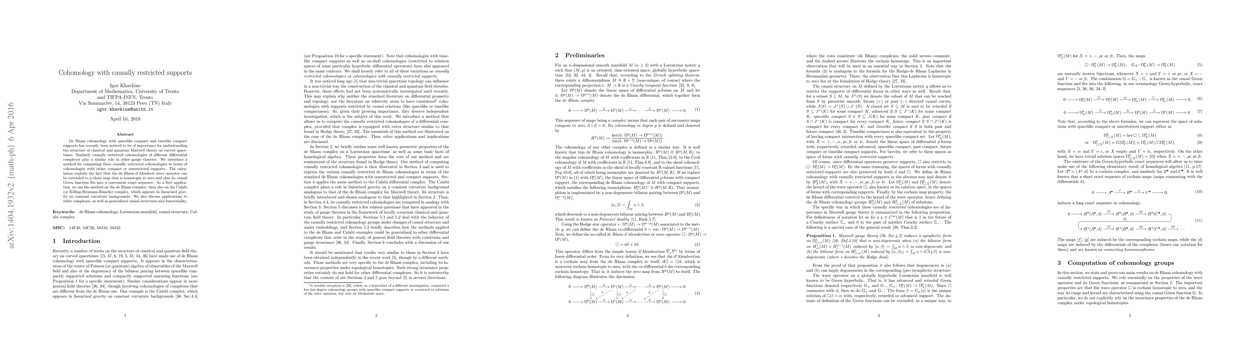 This paper introduces a method for computing causally restricted cohomologies in gauge theories, specifically focusing on de Rham and Calabi complexes in curved spacetimes. The approach leverages a chain map homotopic to zero and an exact sequence involving the causal Green function.