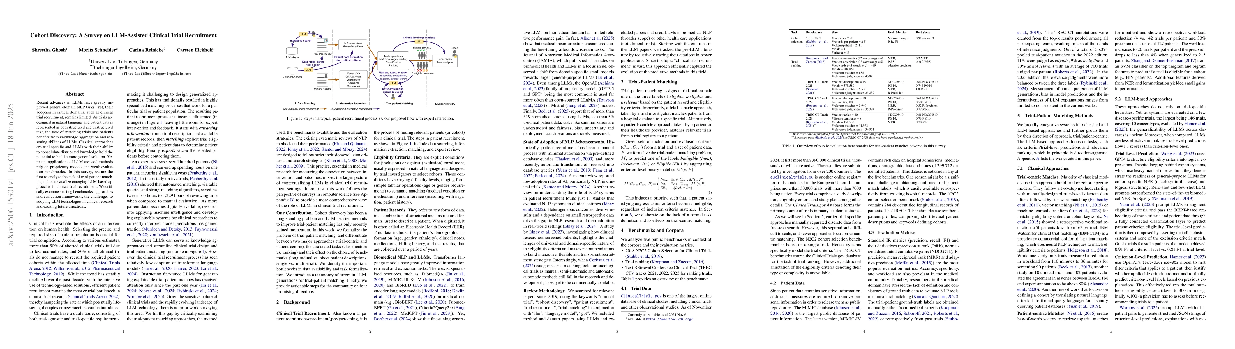 Recent advances in LLMs have greatly improved general-domain NLP tasks. Yet, their adoption in critical domains, such as clinical trial recruitment, remains limited. As trials are designed in natural language and patient data is represented as both structured and unstructured text, the task of matching trials and patients benefits from knowledge aggregation and reasoning abilities of LLMs. Classical approaches are trial-specific and LLMs with their ability to consolidate distributed knowledge hold the potential to build a more general solution. Yet recent applications of LLM-assisted methods rely on proprietary models and weak evaluation benchmarks. In this survey, we are the first to analyze the task of trial-patient matching and contextualize emerging LLM-based approaches in clinical trial recruitment. We critically examine existing benchmarks, approaches and evaluation frameworks, the challenges to adopting LLM technologies in clinical research and exciting future directions.