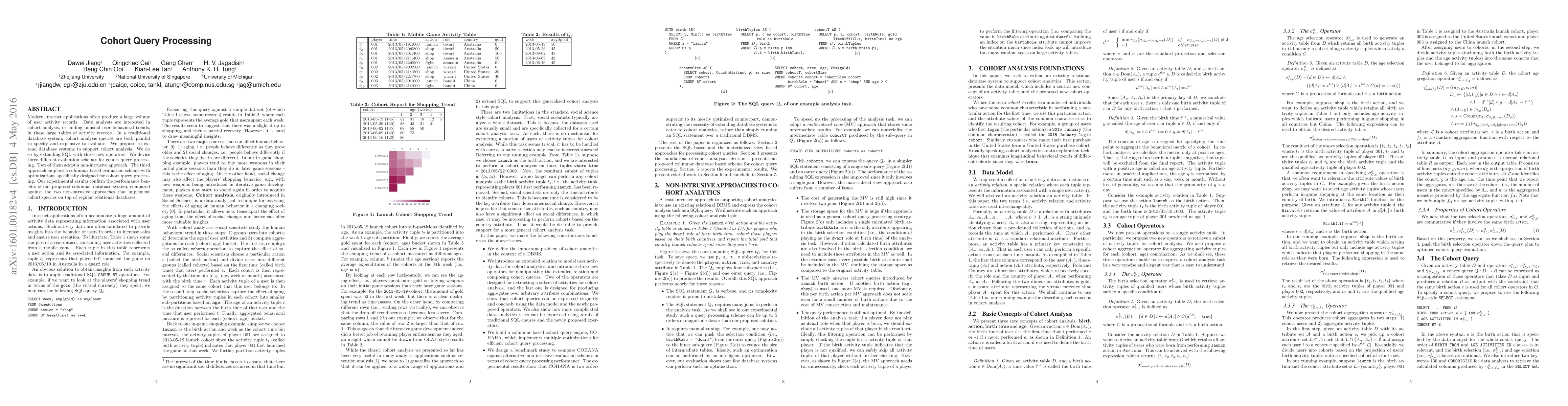Modern Internet applications often produce a large volume of user activity records. Data analysts are interested in cohort analysis, or finding unusual user behavioral trends, in these large tables of activity records. In a traditional database system, cohort analysis queries are both painful to specify and expensive to evaluate. We propose to extend database systems to support cohort analysis. We do so by extending SQL with three new operators. We devise three different evaluation schemes for cohort query processing. Two of them adopt a non-intrusive approach. The third approach employs a columnar based evaluation scheme with optimizations specifically designed for cohort query processing. Our experimental results confirm the performance benefits of our proposed columnar database system, compared against the two non-intrusive approaches that implement cohort queries on top of regular relational databases.