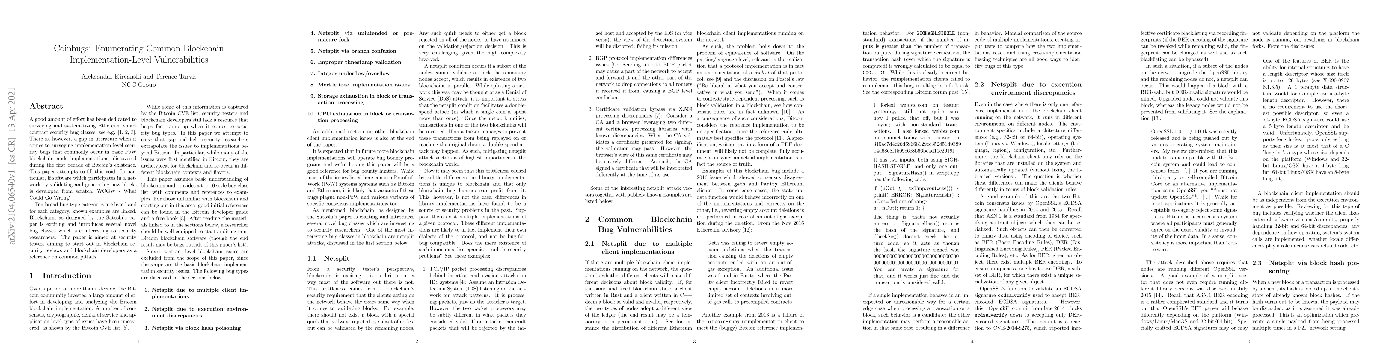 A good amount of effort has been dedicated to surveying and systematizing Ethereum smart contract security bug classes. There is, however, a gap in literature when it comes to surveying implementation-level security bugs that commonly occur in basic PoW blockchain node implementations, discovered during the first decade of Bitcoin's existence. This paper attempts to fill this void. In particular, if software which participates in a network by validating and generating new blocks is developed from scratch, WCGW - What Could Go Wrong? Ten broad bug type categories are listed and for each category, known examples are linked. Blockchain, as designed by the Satoshi's paper is exciting and introduces several novel bug classes which are interesting to security researchers. The paper is aimed at security testers aiming to start out in blockchain security reviews and blockchain developers as a reference on common pitfalls.