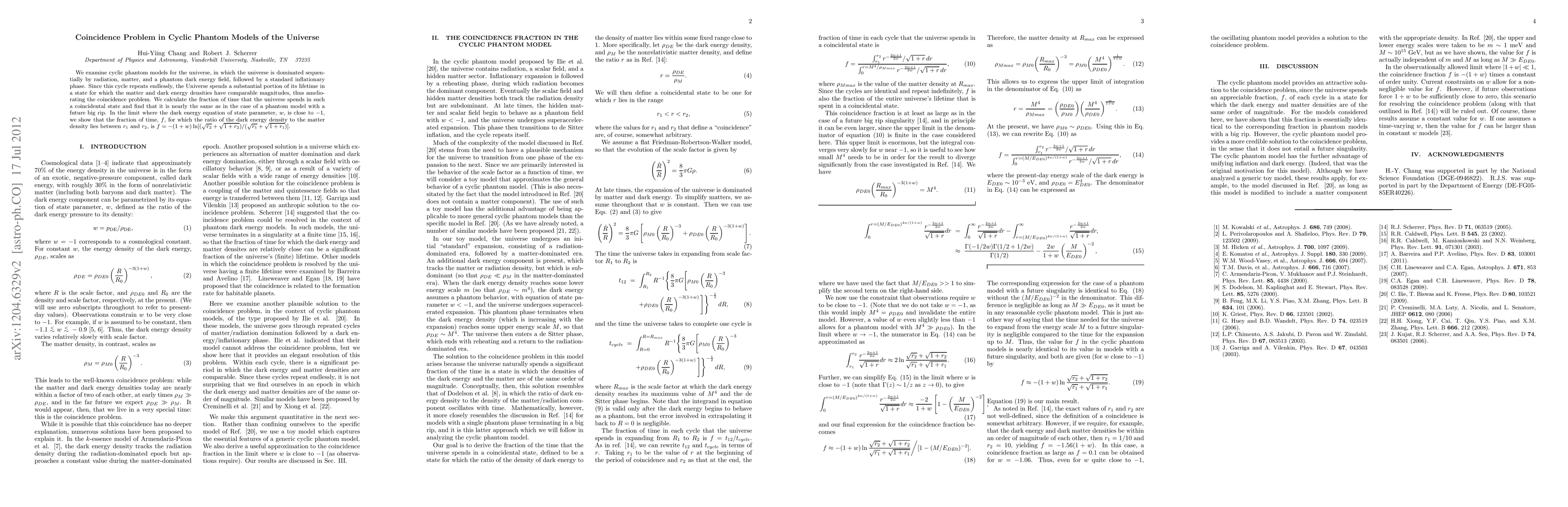 We examine cyclic phantom models for the universe, in which the universe is dominated sequentially by radiation, matter, and a phantom dark energy field, followed by a standard inflationary phase. Since this cycle repeats endlessly, the Universe spends a substantial portion of its lifetime in a state for which the matter and dark energy densities have comparable magnitudes, thus ameliorating the coincidence problem. We calculate the fraction of time that the universe spends in such a coincidental state and find that it is nearly the same as in the case of a phantom model with a future big rip. In the limit where the dark energy equation of state parameter, w, is close to -1, we show that the fraction of time, f, for which the ratio of the dark energy density to the matter density lies between r_1 and r_2, is f = -(1+w) ln [(\sqrt{r_2} + \sqrt{1+r_2})/(\sqrt{r_1} + \sqrt{1+r_1})].