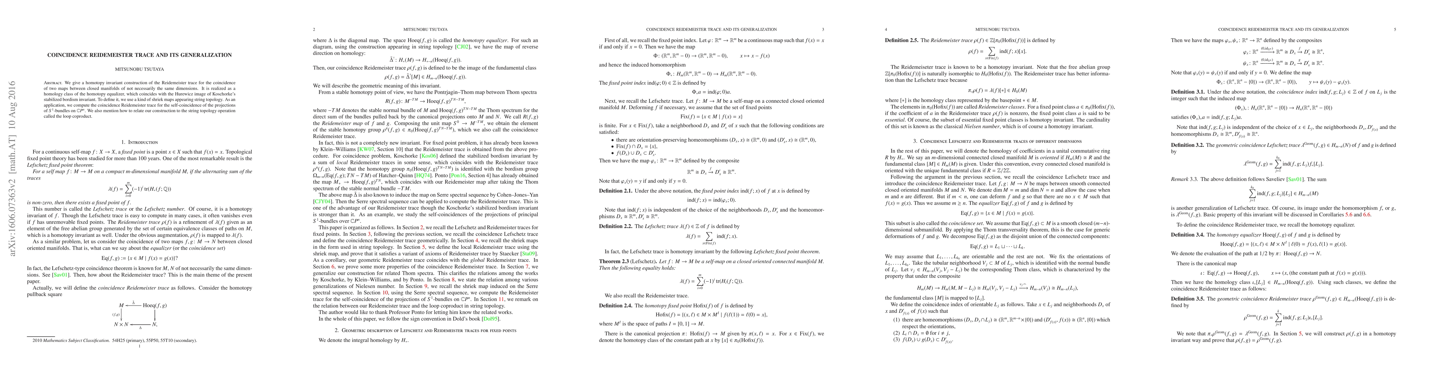 This paper constructs a homotopy invariant Reidemeister trace for the coincidence of two maps between closed manifolds of potentially different dimensions, realized as a homology class of the homotopy equalizer. It applies this construction to compute the self-coincidence trace for $S^1$-bundles on $\mathbb{C}P^n$ and relates it to the loop coproduct in string topology.