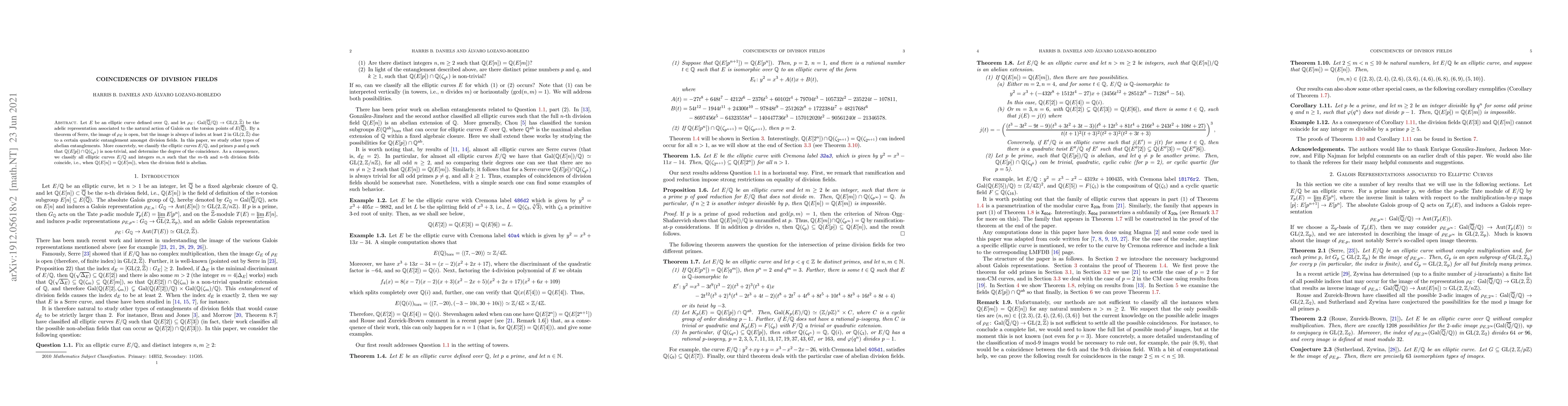 This paper studies the coincidence of division fields for elliptic curves over the rational numbers and determines their degree, with implications for classifying abelian division fields.