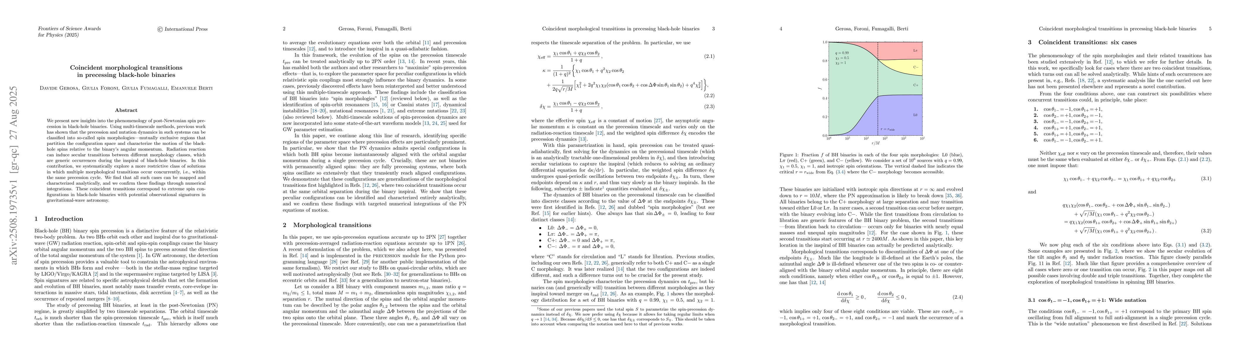 We present new insights into the phenomenology of post-Newtonian spin precession in black-hole binaries. Using multi-timescale methods, previous work has shown that the precession and nutation dynamics in such systems can be classified into so-called spin morphologies --mutually exclusive regions that partition the configuration space and characterize the motion of the black-hole spins relative to the binary's angular momentum. Radiation reaction can induce secular transitions between different morphology classes, which are generic occurrences during the inspiral of black-hole binaries. In this contribution, we systematically explore a more restrictive class of solutions in which multiple morphological transitions occur concurrently, i.e., within the same precession cycle. We find that all such cases can be mapped and characterized analytically, and we confirm these findings through numerical integrations. These coincident transitions correspond to extreme spin configurations in black-hole binaries with potential observational signatures in gravitational-wave astronomy.