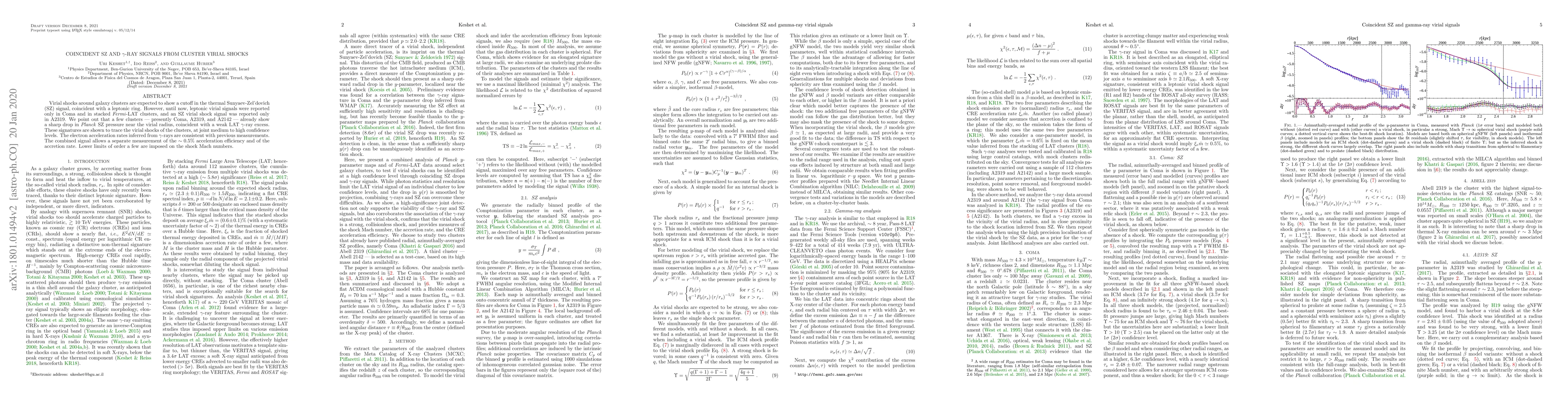 This paper identifies coincident Sunyaev-Zel'dovich (SZ) signal cutoffs and gamma-ray excesses in galaxy clusters Coma, A2319, and A2142, indicating virial shocks. The findings support the presence of electron acceleration and provide estimates for acceleration efficiency and accretion rates.