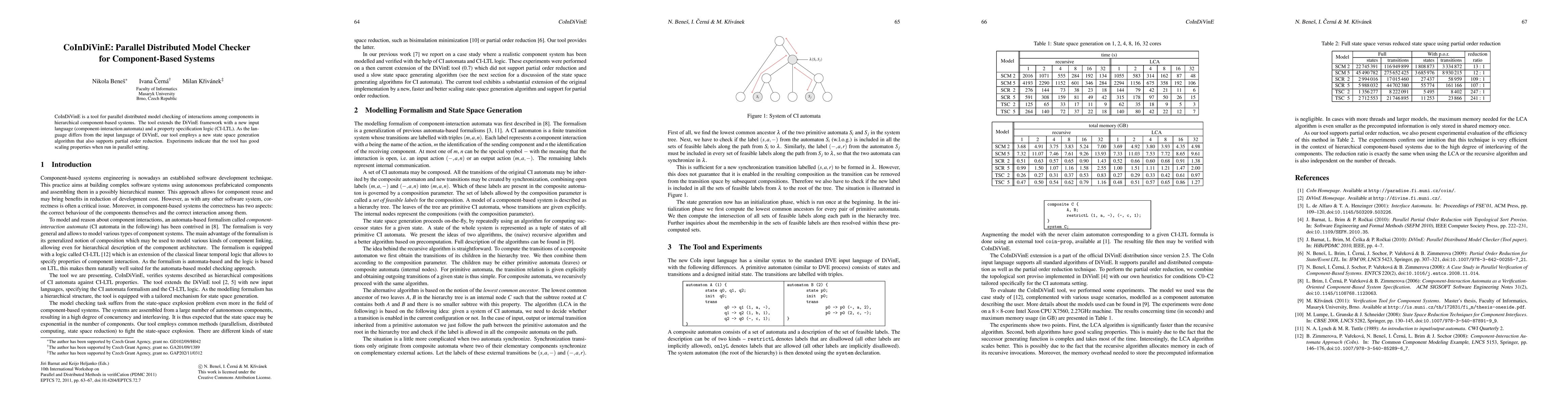 CoInDiVinE is a parallel distributed model checker for verifying interactions in component-based systems, extending the DiVinE framework with a new input language and property specification logic. Experiments show it scales well in parallel settings.