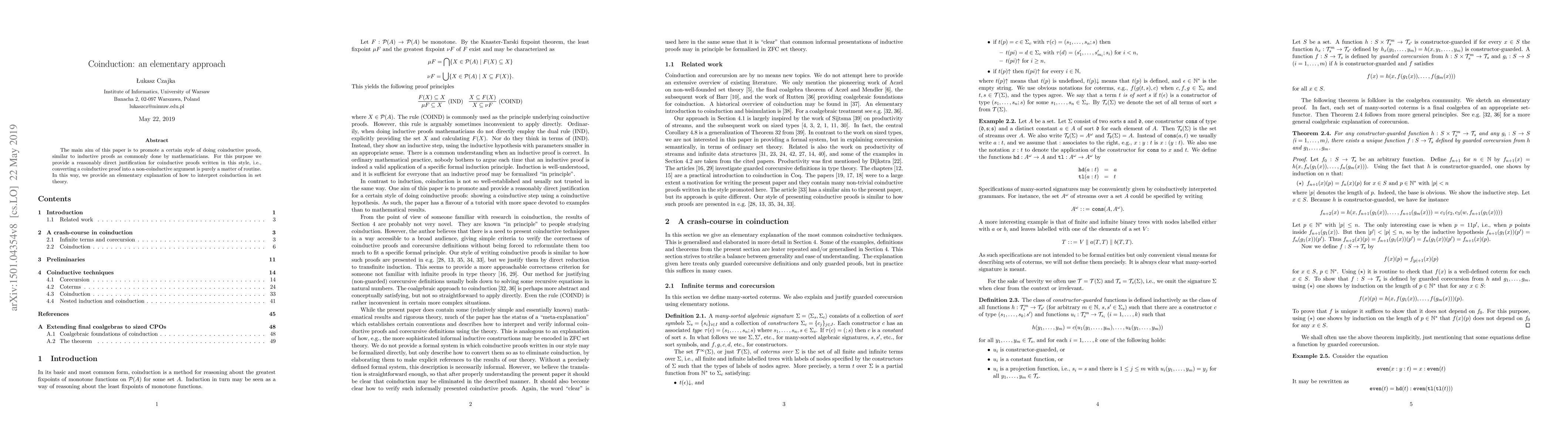 The main aim of this paper is to promote a certain style of doing coinductive proofs, similar to inductive proofs as commonly done by mathematicians. For this purpose, we provide a reasonably direct justification for coinductive proofs written in this style, i.e., converting a coinductive proof into a non-coinductive argument is purely a matter of routine. In this way, we provide an elementary explanation of how to interpret coinduction in set theory.
