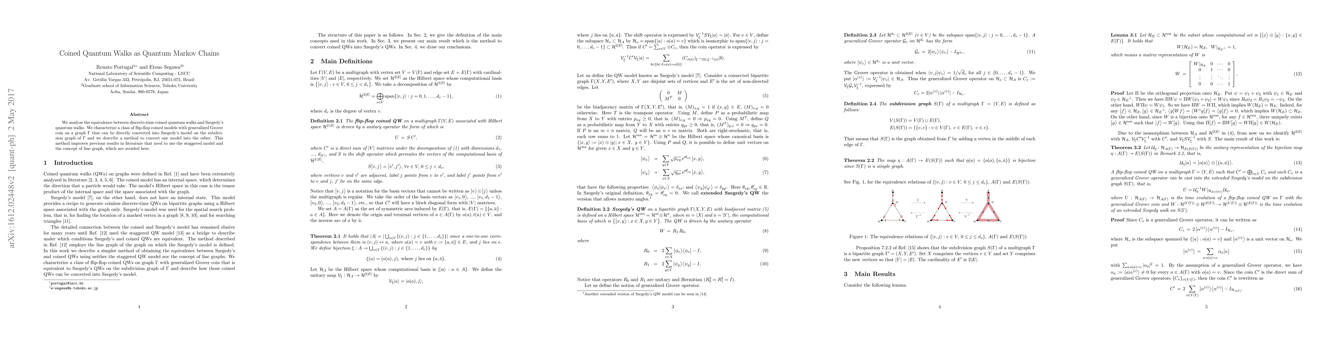 The paper establishes the equivalence between discrete-time coined quantum walks and Szegedy's quantum walks, proposing a method to convert generalized flip-flop coined models into Szegedy's model without using the staggered model or line graph, thus improving existing conversion techniques.