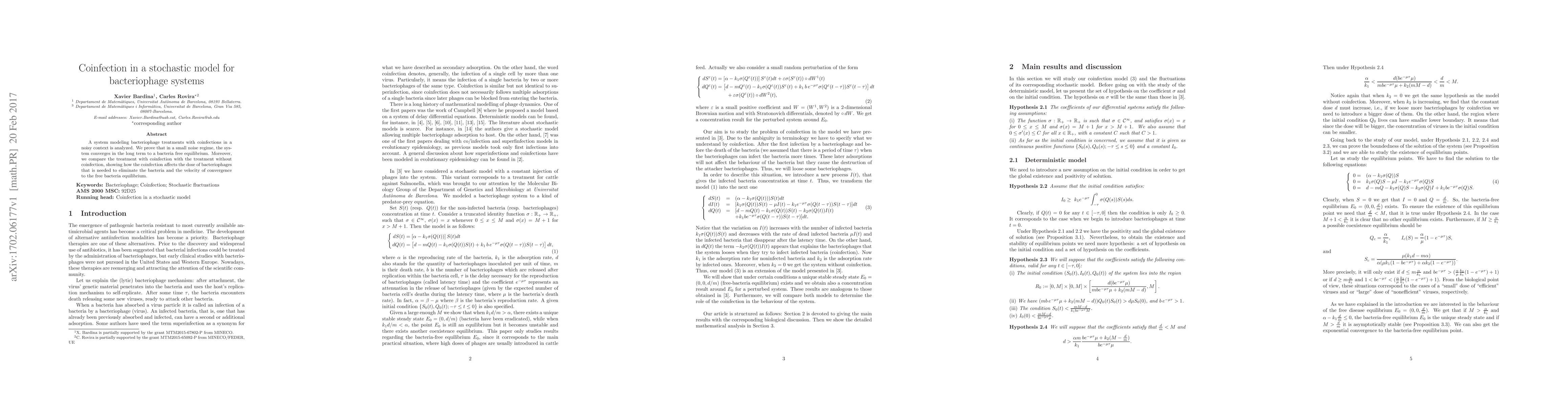 A system modeling bacteriophage treatments with coinfections in a noisy context is analyzed. We prove that in a small noise regime, the system converges in the long term to a bacteria free equilibrium. Moreover, we compare the treatment with coinfection with the treatment without coinfection, showing how the coinfection affects the dose of bacteriophages that is needed to eliminate the bacteria and the velocity of convergence to the free bacteria equilibrium.