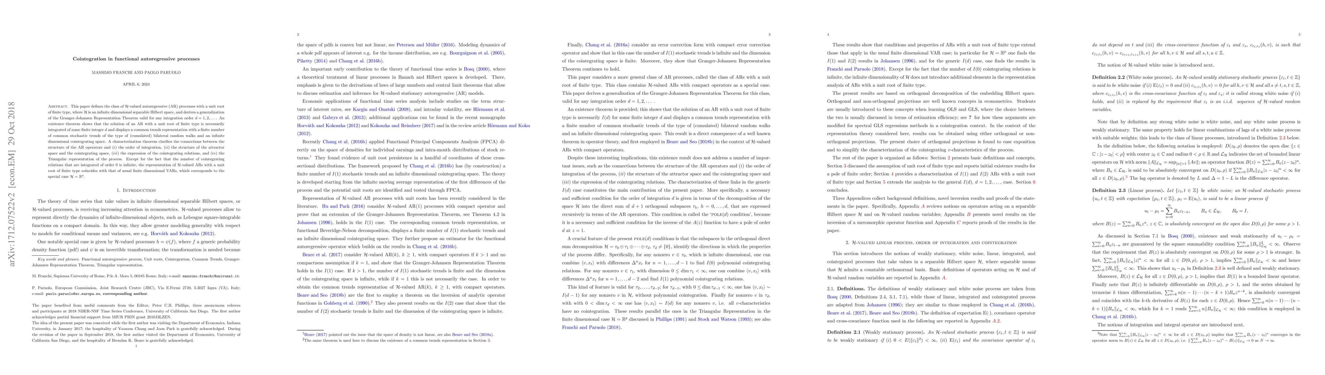 This paper defines the class of $\mathcal{H}$-valued autoregressive (AR) processes with a unit root of finite type, where $\mathcal{H}$ is an infinite dimensional separable Hilbert space, and derives a generalization of the Granger-Johansen Representation Theorem valid for any integration order $d=1,2,\dots$. An existence theorem shows that the solution of an AR with a unit root of finite type is necessarily integrated of some finite integer $d$ and displays a common trends representation with a finite number of common stochastic trends of the type of (cumulated) bilateral random walks and an infinite dimensional cointegrating space. A characterization theorem clarifies the connections between the structure of the AR operators and $(i)$ the order of integration, $(ii)$ the structure of the attractor space and the cointegrating space, $(iii)$ the expression of the cointegrating relations, and $(iv)$ the Triangular representation of the process. Except for the fact that the number of cointegrating relations that are integrated of order 0 is infinite, the representation of $\mathcal{H}$-valued ARs with a unit root of finite type coincides with that of usual finite dimensional VARs, which corresponds to the special case $\mathcal{H}=\mathbb{R}^p$.