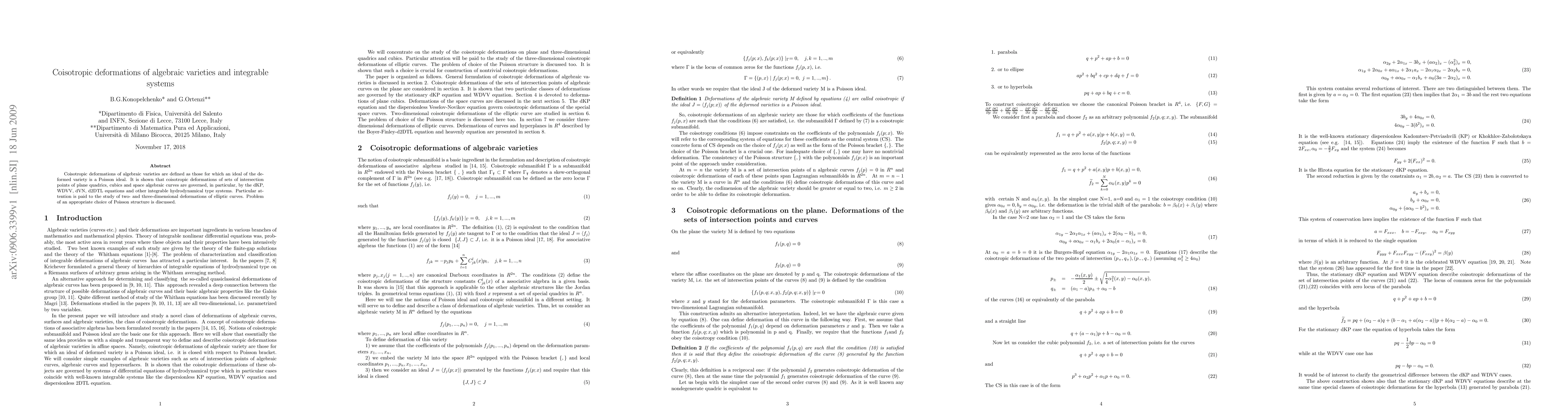 This paper explores the concept of coisotropic deformations of algebraic varieties, demonstrating that these deformations, particularly those of intersections of plane and space curves, are governed by integrable systems like the dKP, WDVV, dVN, and d2DTL equations. It focuses on two- and three-dimensional deformations of elliptic curves and discusses the selection of suitable Poisson structures.