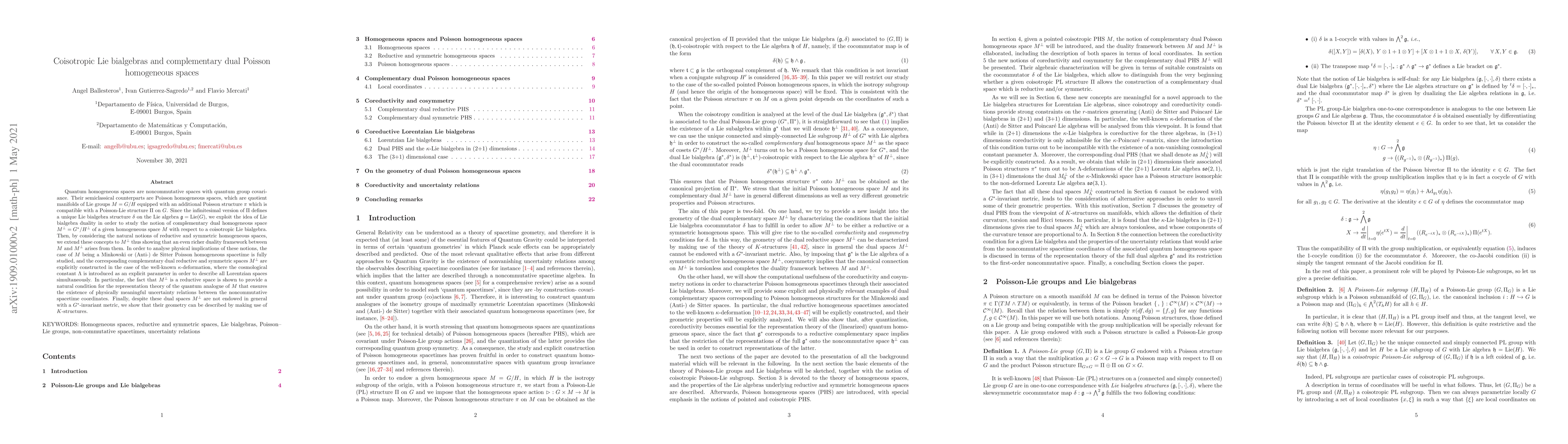 This research explores the concept of coisotropic Lie bialgebras and complementary dual Poisson homogeneous spaces, revealing a richer duality framework between homogeneous spaces. It also constructs complementary dual reductive and symmetric spaces for Minkowski or (Anti-)de Sitter Poisson spacetimes, showing that the dual space’s reductive nature provides a foundation for meaningful uncertainty relations in the quantum analogue, while utilizing $K$-structures to describe their geometry.