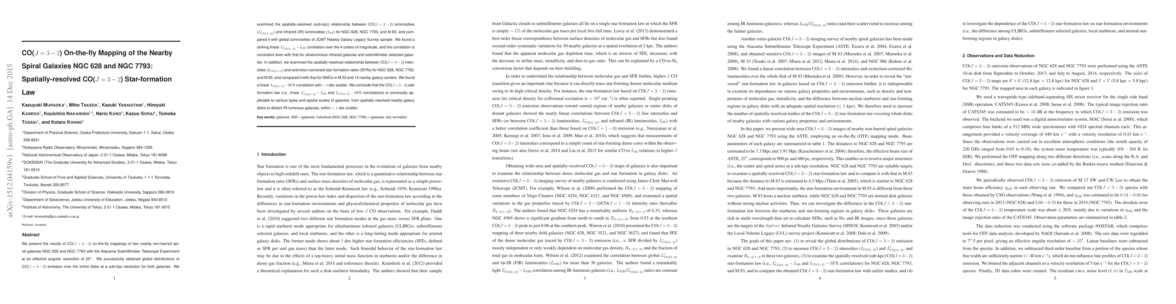 This study presents CO(J=3-2) on-the-fly mappings of spiral galaxies NGC 628 and NGC 7793, revealing a linear correlation between CO(J=3-2) luminosities and infrared luminosities over four orders of magnitude, and a linear correlation between CO(J=3-2) intensities and star formation rates with 1 dex scatter, indicating a universal CO(J=3-2) star-formation law.
