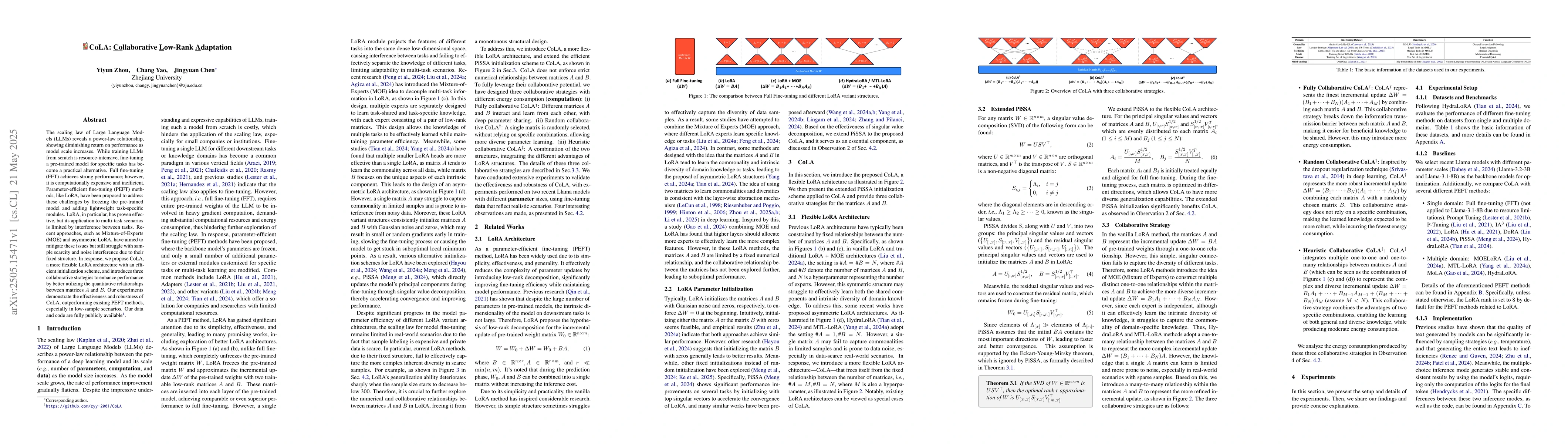 CoLA introduces a novel, flexible LoRA architecture with collaborative strategies and an efficient initialization scheme, improving performance in parameter-efficient fine-tuning.
