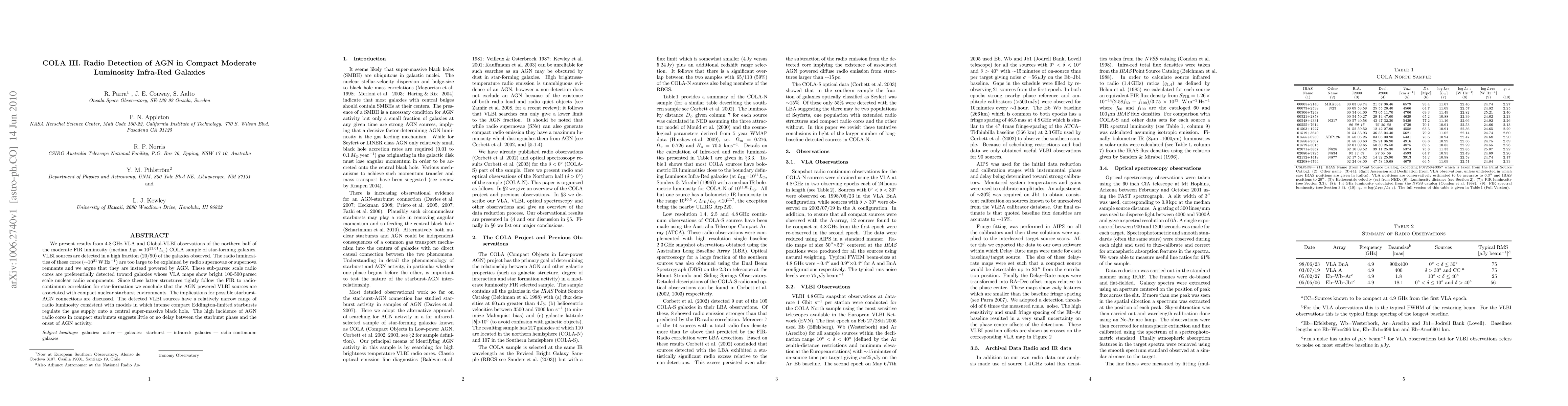 We present results from 4.8 GHz VLA and Global-VLBI observations of the northern half of the moderate FIR luminosity (median L_IR = 10^11.01 L_Sol) COLA sample of star-forming galaxies. VLBI sources are detected in a high fraction (20/90) of the galaxies observed. The radio luminosities of these cores (~10^21 W/Hz) are too large to be explained by radio supernovae or supernova remnants and we argue that they are instead powered by AGN. These sub-parsec scale radio cores are preferentially detected toward galaxies whose VLA maps show bright 100-500 parsec scale nuclear radio components. Since these latter structures tightly follow the FIR to radio-continuum correlation for star-formation we conclude that the AGN powered VLBI sources are associated with compact nuclear starburst environments. The implications for possible starburst-AGN connections are discussed. The detected VLBI sources have a relatively narrow range of radio luminosity consistent with models in which intense compact Eddington-limited starbursts regulate the gas supply onto a central super-massive black hole. The high incidence of AGN radio cores in compact starbursts suggests little or no delay between the starburst phase and the onset of AGN activity.