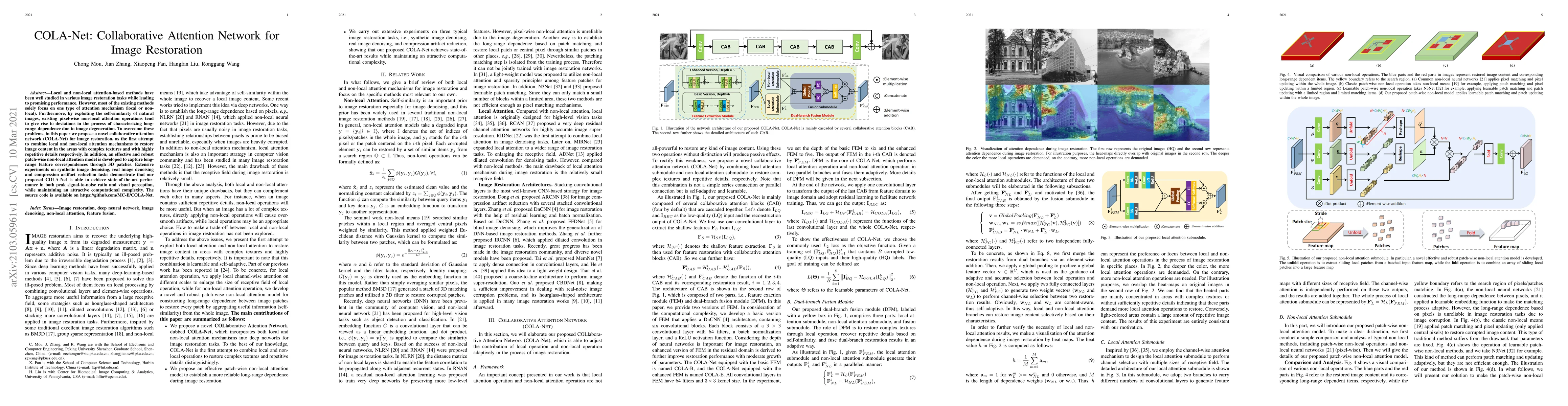 COLA-Net combines local and non-local attention mechanisms to improve image restoration, especially for complex textures and repetitive details. It achieves state-of-the-art performance in denoising and artifact reduction tasks while maintaining computational efficiency.