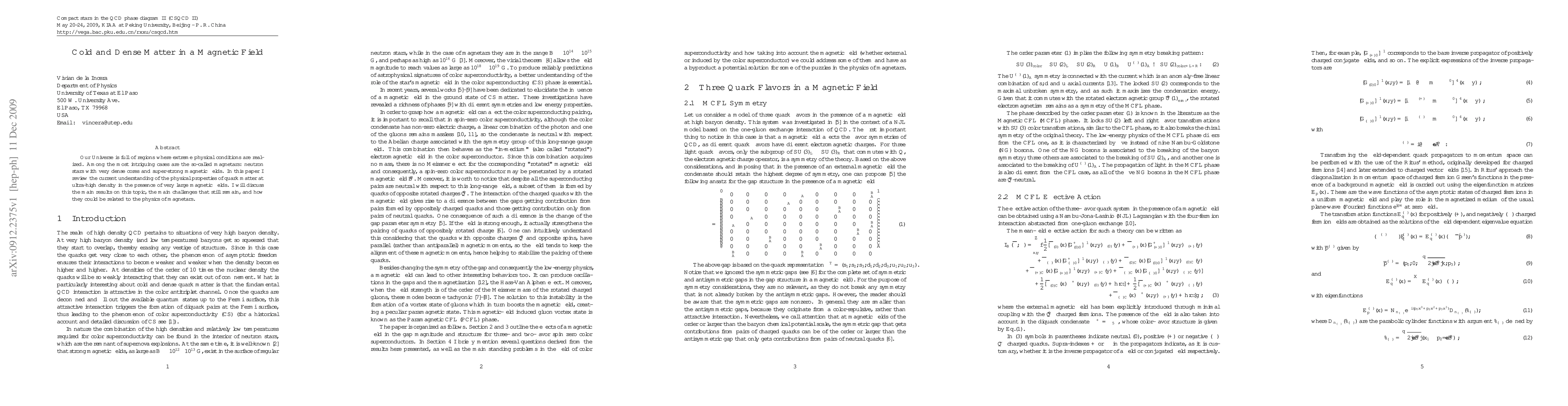 Our Universe is full of regions where extreme physical conditions are realized. Among the most intriguing cases are the so-called magnetars: neutron stars with very dense cores and super-strong magnetic fields. In this paper I review the current understanding of the physical properties of quark matter at ultra-high density in the presence of very large magnetic fields. I will discuss the main results on this topic, the main challenges that still remain, and how they could be related to the physics of magnetars.