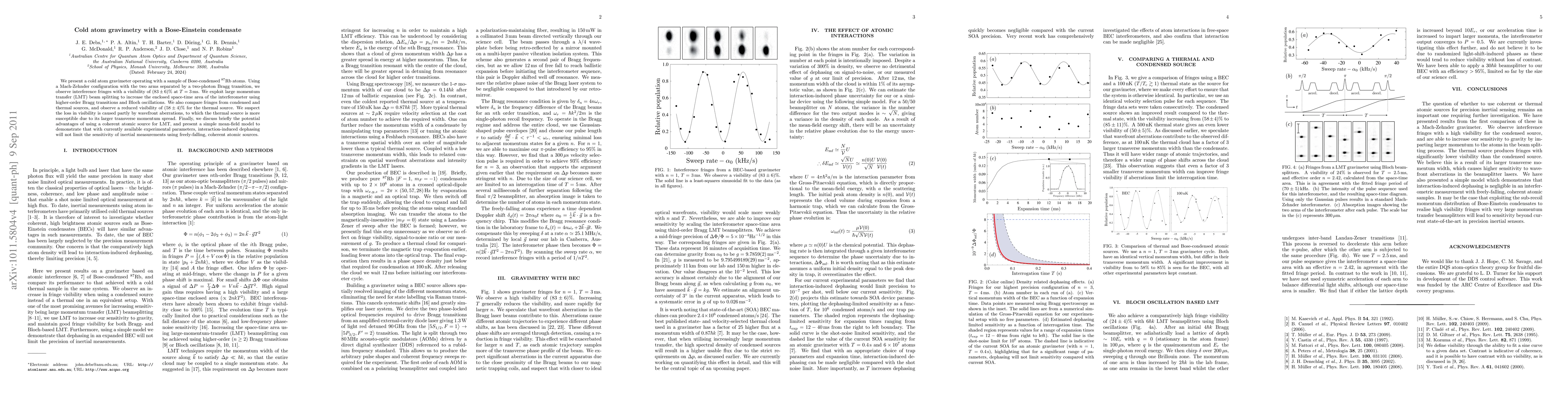 Researchers demonstrate a cold atom gravimeter using Bose-Einstein Condensate Rubidium-87 atoms, achieving 83% visibility at T=3 ms. The study shows promise for inertial measurements with freely-falling coherent atomic sources.