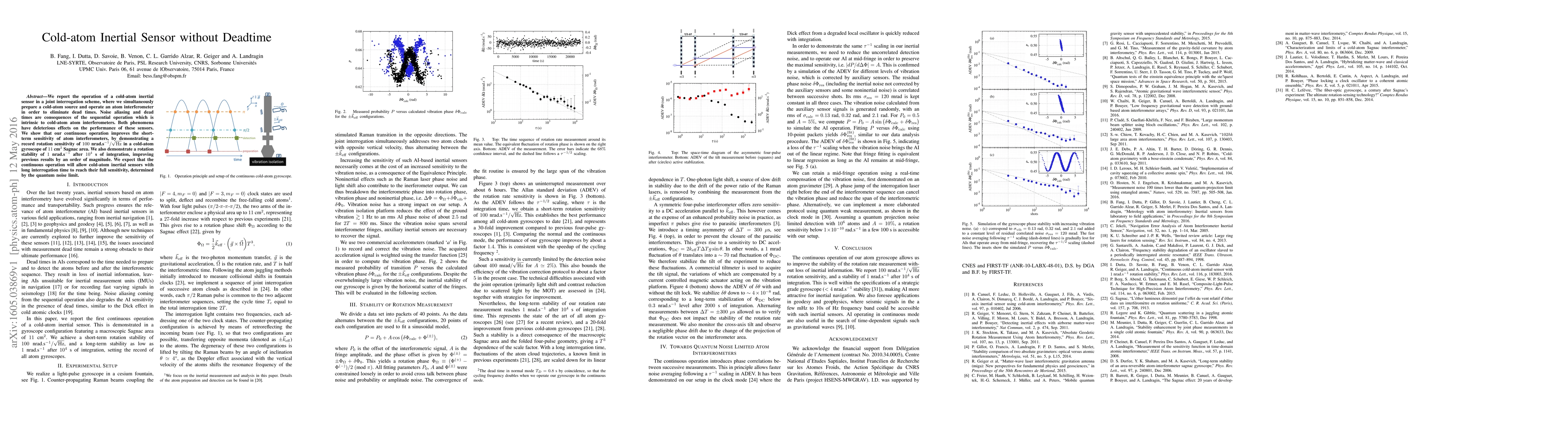 We report the operation of a cold-atom inertial sensor in a joint interrogation scheme, where we simultaneously prepare a cold-atom source and operate an atom interferometer in order to eliminate dead times. Noise aliasing and dead times are consequences of the sequential operation which is intrinsic to cold-atom atom interferometers. Both phenomena have deleterious effects on the performance of these sensors. We show that our continuous operation improves the short-term sensitivity of atom interferometers, by demonstrating a record rotation sensitivity of $100$ nrad.s$^{-1}/\sqrt{\rm Hz}$ in a cold-atom gyroscope of $11$ cm$^2$ Sagnac area. We also demonstrate a rotation stability of $1$ nrad.s$^{-1}$ after $10^4$ s of integration, improving previous results by an order of magnitude. We expect that the continuous operation will allow cold-atom inertial sensors with long interrogation time to reach their full sensitivity, determined by the quantum noise limit.