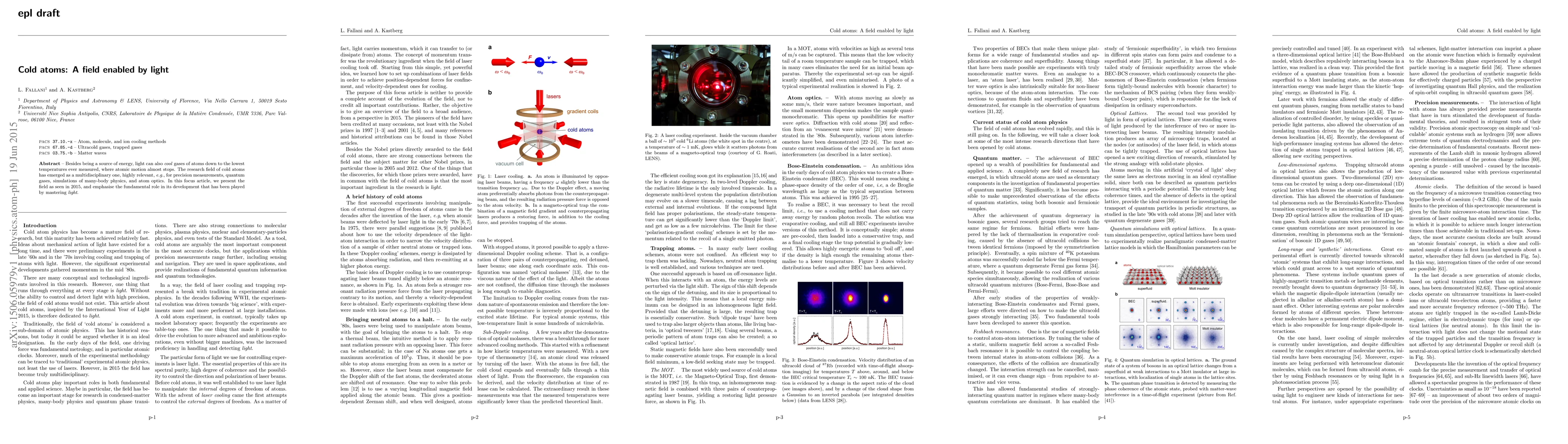Besides being a source of energy, light can also cool gases of atoms down to the lowest temperatures ever measured, where atomic motion almost stops. The research field of cold atoms has emerged as a multidisciplinary one, highly relevant, e.g., for precision measurements, quantum gases, simulations of many-body physics, and atom optics. In this focus article, we present the field as seen in 2015, and emphasise the fundamental role in its development that has been played by mastering.