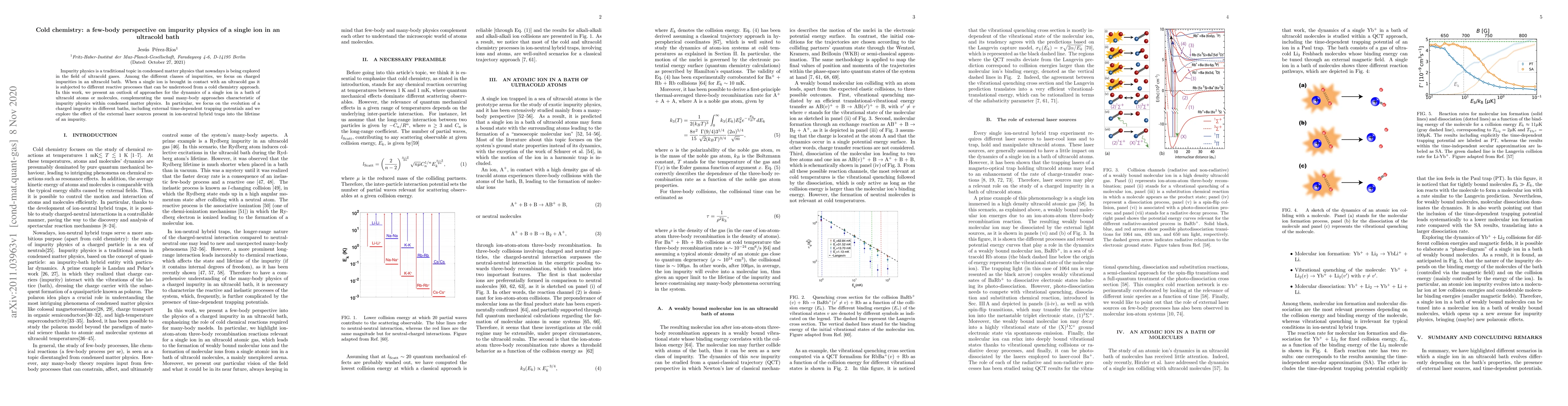 This paper explores the dynamics of charged impurities in ultracold gases from a cold chemistry perspective, focusing on the evolution of a single ion in various baths, including the influence of external trapping potentials and laser sources on impurity lifetime. It complements traditional many-body approaches in impurity physics.
