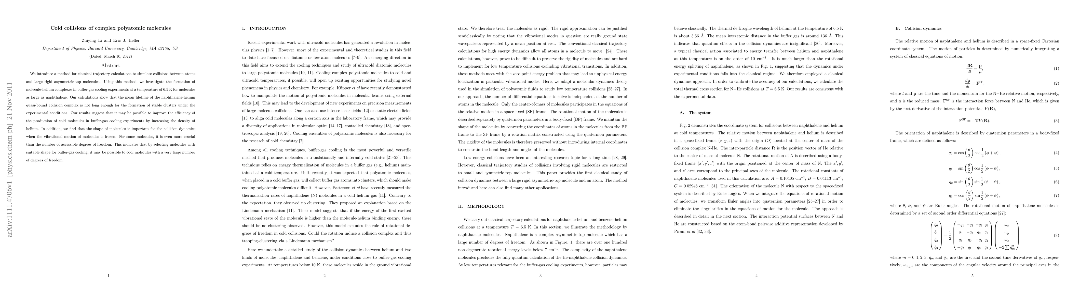 Researchers developed a method to simulate collisions between atoms and large molecules, finding that increasing helium density could improve molecule cooling efficiency and that molecule shape is crucial for collision dynamics.