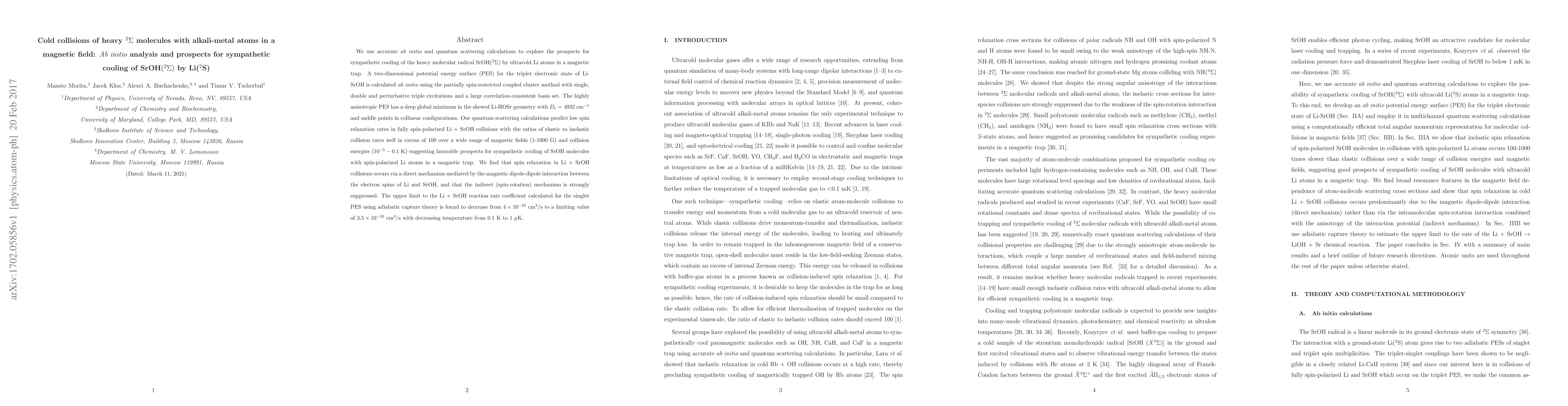 We use accurate ab initio and quantum scattering calculations to explore the prospects for sympathetic cooling of the heavy molecular radical SrOH($^2\Sigma$) by ultracold Li atoms in a magnetic trap. A two-dimensional potential energy surface (PES) for the triplet electronic state of Li-SrOH is calculated ab initio using the partially spin-restricted coupled cluster method with single, double and perturbative triple excitations and a large correlation-consistent basis set. The highly anisotropic PES has a deep global minimum in the skewed Li-HOSr geometry with $D_e=4932$ cm$^{-1}$ and saddle points in collinear configurations. Our quantum scattering calculations predict low spin relaxation rates in fully spin-polarized Li+SrOH collisions with the ratios of elastic to inelastic collision rates well in excess of 100 over a wide range of magnetic fields (1-1000 G) and collision energies (10$^{-5}-0.1$~K) suggesting favorable prospects for sympathetic cooling of SrOH molecules with spin-polarized Li atoms in a magnetic trap. We find that spin relaxation in Li+SrOH collisions occurs via a direct mechanism mediated by the magnetic dipole-dipole interaction between the electron spins of Li and SrOH, and that the indirect (spin-rotation) mechanism is strongly suppressed. The upper limit to the Li+SrOH reaction rate coefficient calculated for the singlet PES using adiabatic capture theory is found to decrease from $4\times 10^{-10}$~cm$^3$/s to a limiting value of $3.5\times 10^{-10}$ cm$^3$/s with decreasing temperature from 0.1 K to 1 $\mu$K.