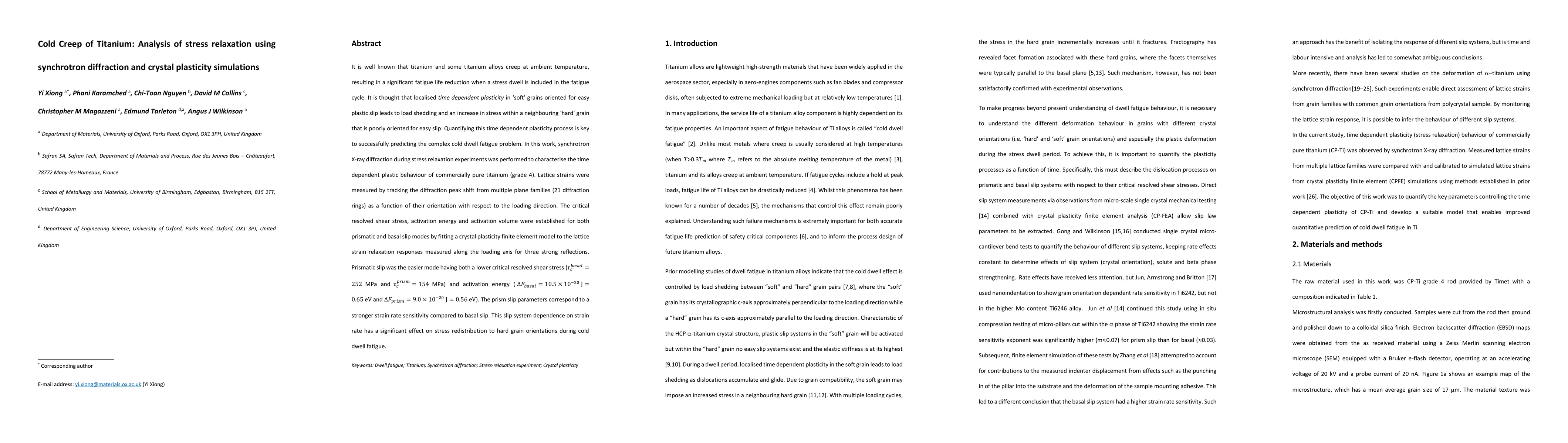 There is a long standing technological problem in which a stress dwell during cyclic loading at room temperature in Ti causes a significant fatigue life reduction. It is thought that localised time dependent plasticity in soft grains oriented for easy plastic slip leads to load shedding and an increase in stress within a neighbouring hard grain poorly oriented for easy slip. Quantifying this time dependent plasticity process is key to successfully predicting the complex cold dwell fatigue problem. This work uses a novel approach of in situ synchrotron X-ray diffraction during stress relaxation tests, to quantify the time dependent plasticity. Measured lattice strains from multiple lattice families (21 diffraction rings) were compared with simulated lattice strains from crystal plasticity finite element (CPFE) simulations. The prism slip parameters were found to show stronger strain rate sensitivity compared to basal slip, and this has a significant effect on stress redistribution to hard grain orientations during cold creep.