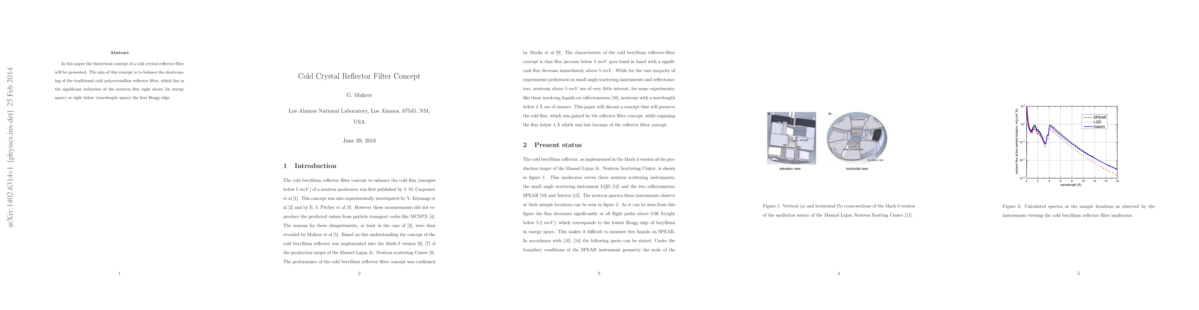 In this paper the theoretical concept of a cold crystal reflector filter will be presented. The aim of this concept is to balance the shortcoming of the traditional cold polycrystalline reflector filter, which lies in the significant reduction of the neutron flux right above (in energy space) or right below (wavelength space) the first Bragg edge.