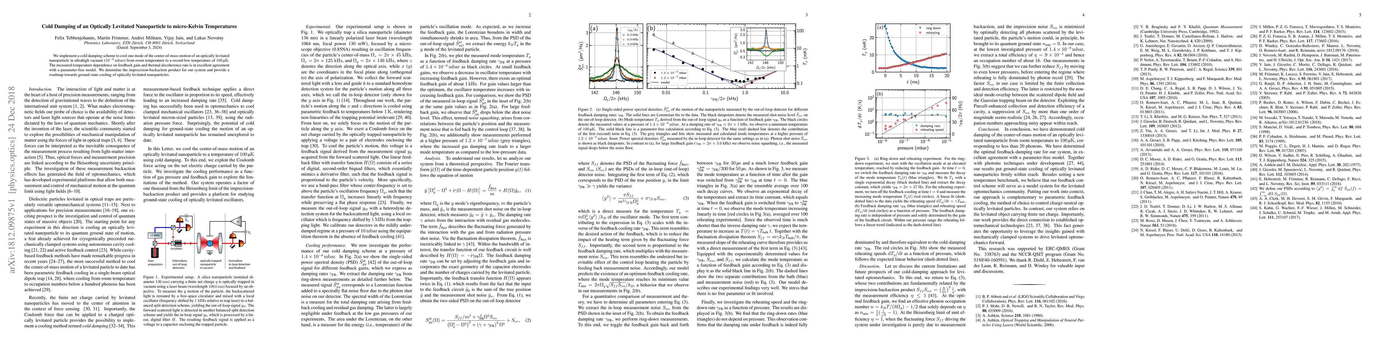This study successfully cools one mode of an optically levitated nanoparticle to a record-low temperature of 100 micro-Kelvin using a cold damping technique, aligning experimental results with theoretical predictions and paving the way for nanoparticle ground-state cooling.