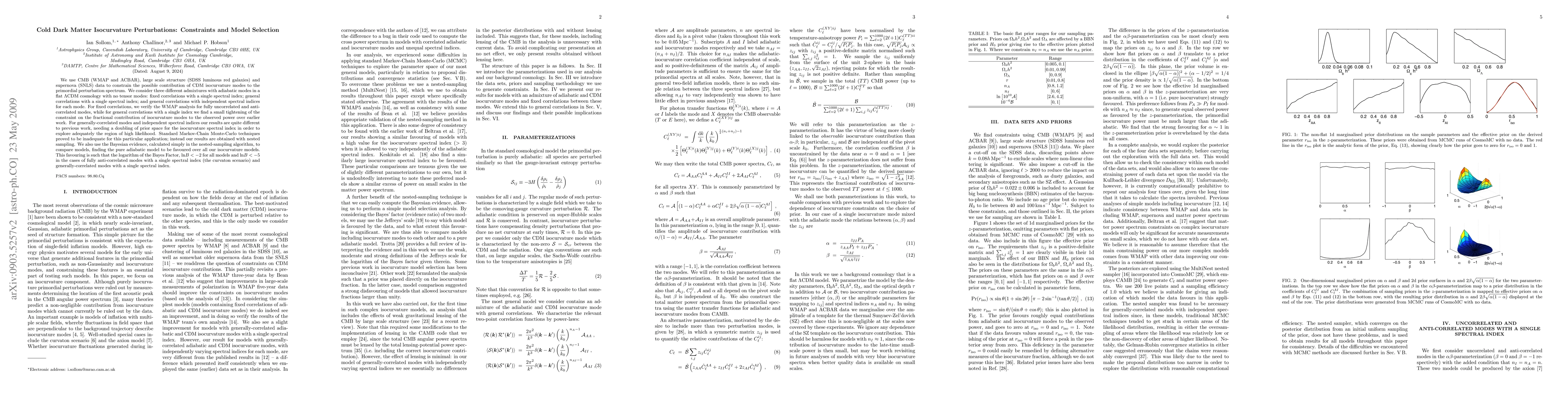 We use CMB (WMAP and ACBAR), large scale structure (SDSS luminous red galaxies) and supernova (SNLS) data to constrain the possible contribution of CDM isocurvature modes to the primordial perturbation spectrum. We consider three different admixtures with adiabatic modes in a flat $\Lambda$CDM cosmology with no tensor modes: fixed correlations with a single spectral index; general correlations with a single spectral index; and general correlations with independent spectral indices for each mode. For fixed correlations, we verify the WMAP analysis for fully uncorrelated and anti-correlated modes, while for general correlations with a single index we find a small tightening of the constraint on the fractional contribution of isocurvature modes to the observed power over earlier work. For generally-correlated modes and independent spectral indices our results are quite different to previous work, needing a doubling of prior space for the isocurvature spectral index in order to explore adequately the region of high likelihood. Standard Markov-Chain Monte-Carlo techniques proved to be inadequate for this particular application; instead our results are obtained with nested sampling. We also use the Bayesian evidence, calculated simply in the nested-sampling algorithm, to compare models, finding the pure adiabatic model to be favoured over all our isocurvature models. This favouring is such that the logarithm of the Bayes Factor, $\mathrm{ln} B < -2$ for all models and $\mathrm{ln} B < -5$ in the cases of fully anti-correlated modes with a single spectral index (the curvaton scenario) and generally-correlated modes with a single spectral index.