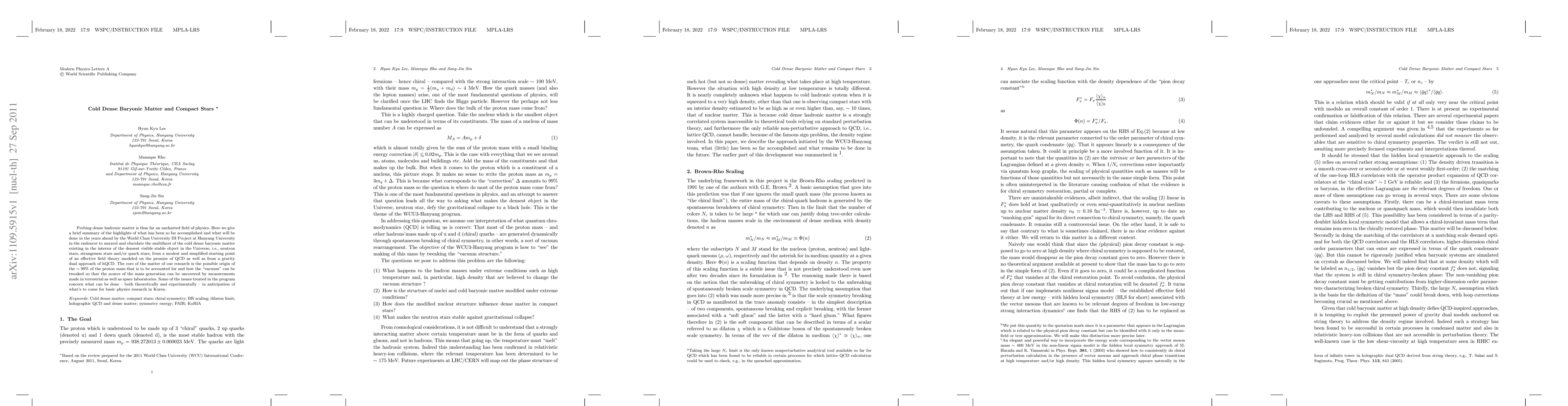 Probing dense hadronic matter is thus far an uncharted field of physics. Here we give a brief summary of the highlights of what has been so far accomplished and what will be done in the years ahead by the World Class University III Project at Hanyang University in the endeavor to unravel and elucidate the multifacet of the cold dense baryonic matter existing in the interior of the densest visible stable object in the Universe, i.e., neutron stars, strangeness stars and/or quark stars, from a modest and simplified starting point of an effective field theory modeled on the premise of QCD as well as from a gravity dual approach of hQCD. The core of the matter of our research is the possible origin of the $\sim 99%$ of the proton mass that is to be accounted for and how the "vacuum" can be tweaked so that the source of the mass generation can be uncovered by measurements made in terrestrial as well as space laboratories. Some of the issues treated in the program concern what can be done - both theoretically and experimentally - in anticipation of what's to come for basic physics research in Korea.