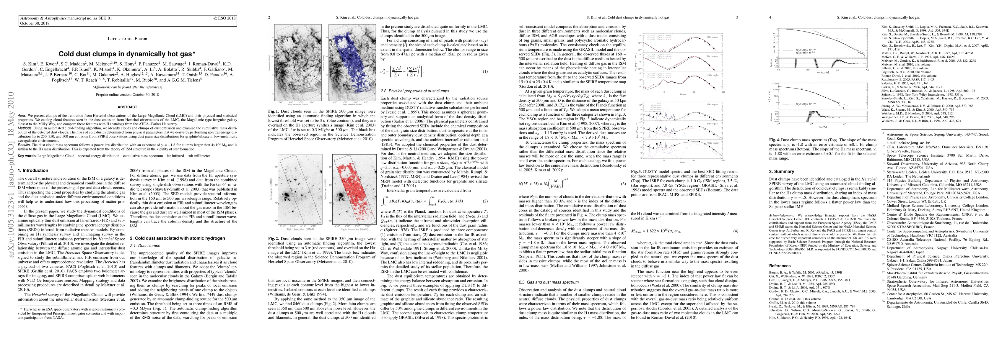 This study from Herschel observations of the Large Magellanic Cloud identifies dust clumps using an automated algorithm, determining their masses via spectral energy distribution fits. The dust cloud mass spectrum follows a power law with an exponent of -1.8 for masses above 400 solar masses, mirroring HI mass distribution, suggesting similar ISM structure near star formation sites.