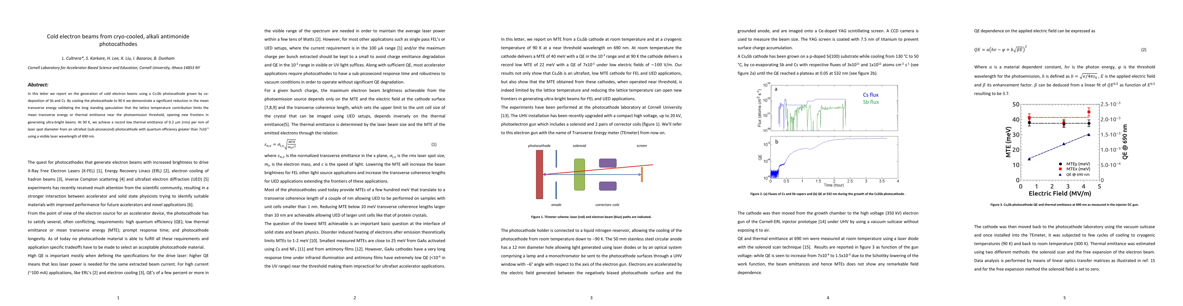 In this letter we report on the generation of cold electron beams using a Cs3Sb photocathode grown by co-deposition of Sb and Cs. By cooling the photocathode to 90 K we demonstrate a significant reduction in the mean transverse energy validating the long standing speculation that the lattice temperature contribution limits the mean transverse energy or thermal emittance near the photoemission threshold, opening new frontiers in generating ultra-bright beams. At 90 K, we achieve a record low thermal emittance of 0.2 $\mu$m (rms) per mm of laser spot diameter from an ultrafast (sub-picosecond) photocathode with quantum efficiency greater than $7\times 10^{-5}$ using a visible laser wavelength of 690 nm.