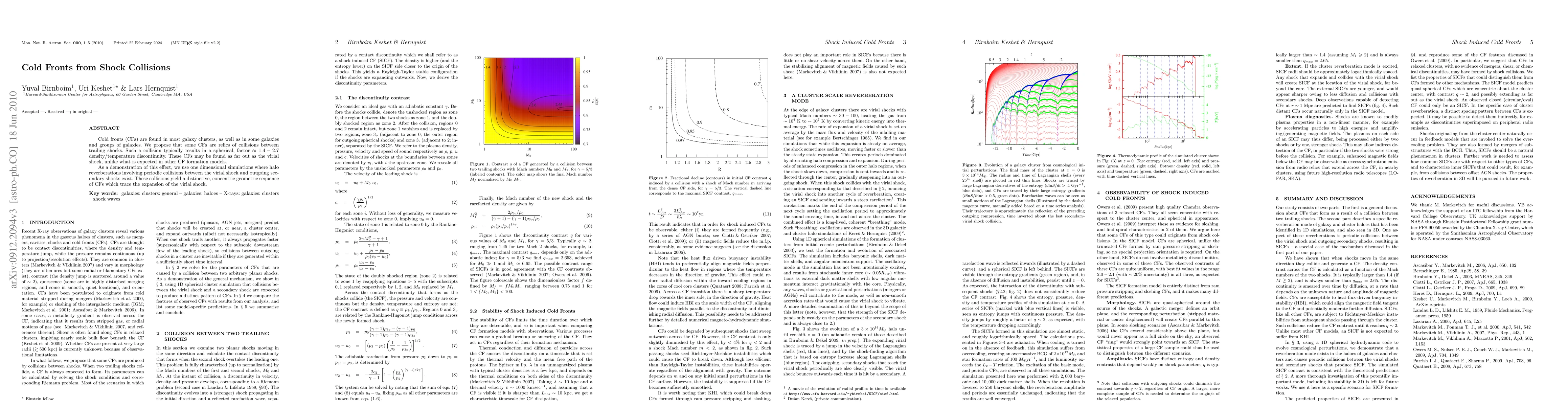 Cold fronts in galaxy clusters may form from collisions between trailing shocks, resulting in a distinctive geometric sequence of density/temperature discontinuities.