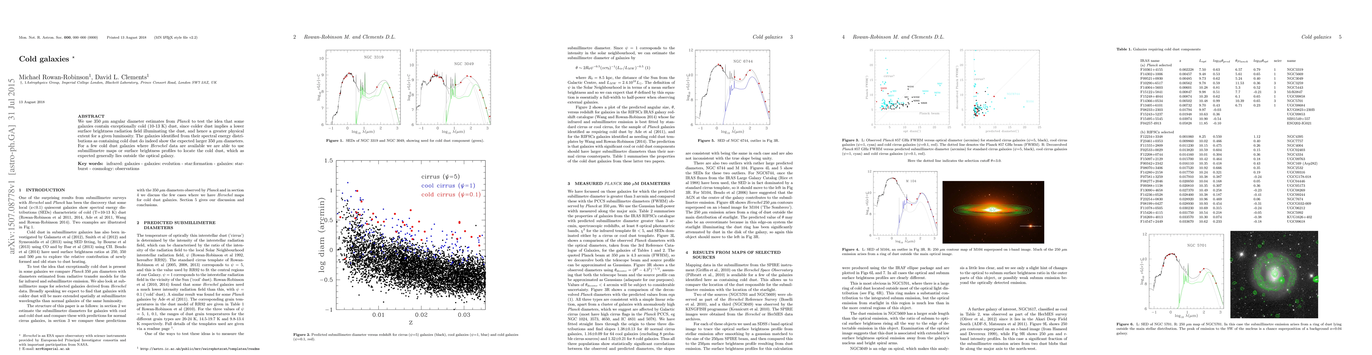 We use 350 mu angular diameter estimates from Planck to test the idea that some galaxies contain exceptionally cold (10-13 K) dust, since colder dust implies a lower surface brightness radiation field illuminating the dust, and hence a greater physical extent for a given luminosity. The galaxies identified from their spectral energy distributions as containing cold dust do indeed show the expected larger 350 mu diameters. For a few cold dust galaxies where Herschel data are available we are able to use submillimetre maps or surface brightness profiles to locate the cold dust, which as expected generally lies outside the optical galaxy.