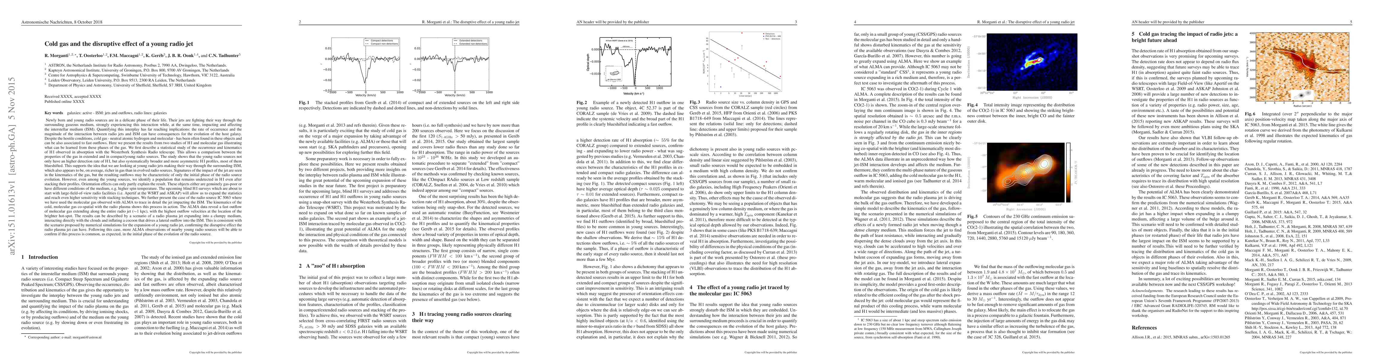 This paper investigates the interaction between young radio jets and cold gas in the interstellar medium (ISM), revealing that young radio sources exhibit broader and more asymmetric HI profiles indicative of jet-ISM interaction. Additionally, ALMA observations of IC5063 show a fast outflow of molecular gas driven by the radio jet, suggesting the jet expands into a clumpy medium, inflating a cocoon that induces lateral outflow.